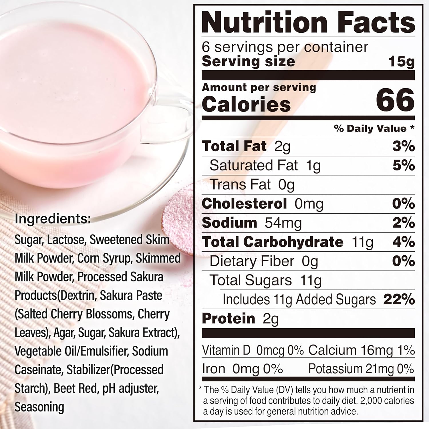 - EASY & CONVENIENT – Packed in a resealable pouch, this sakura latte powder is perfect for easy daily use. Enjoy the delicate flavor of sakura tea anytime, anywhere—whether at home, the office, or on the go. A quick stir is all it takes to savor a creamy, floral treat.