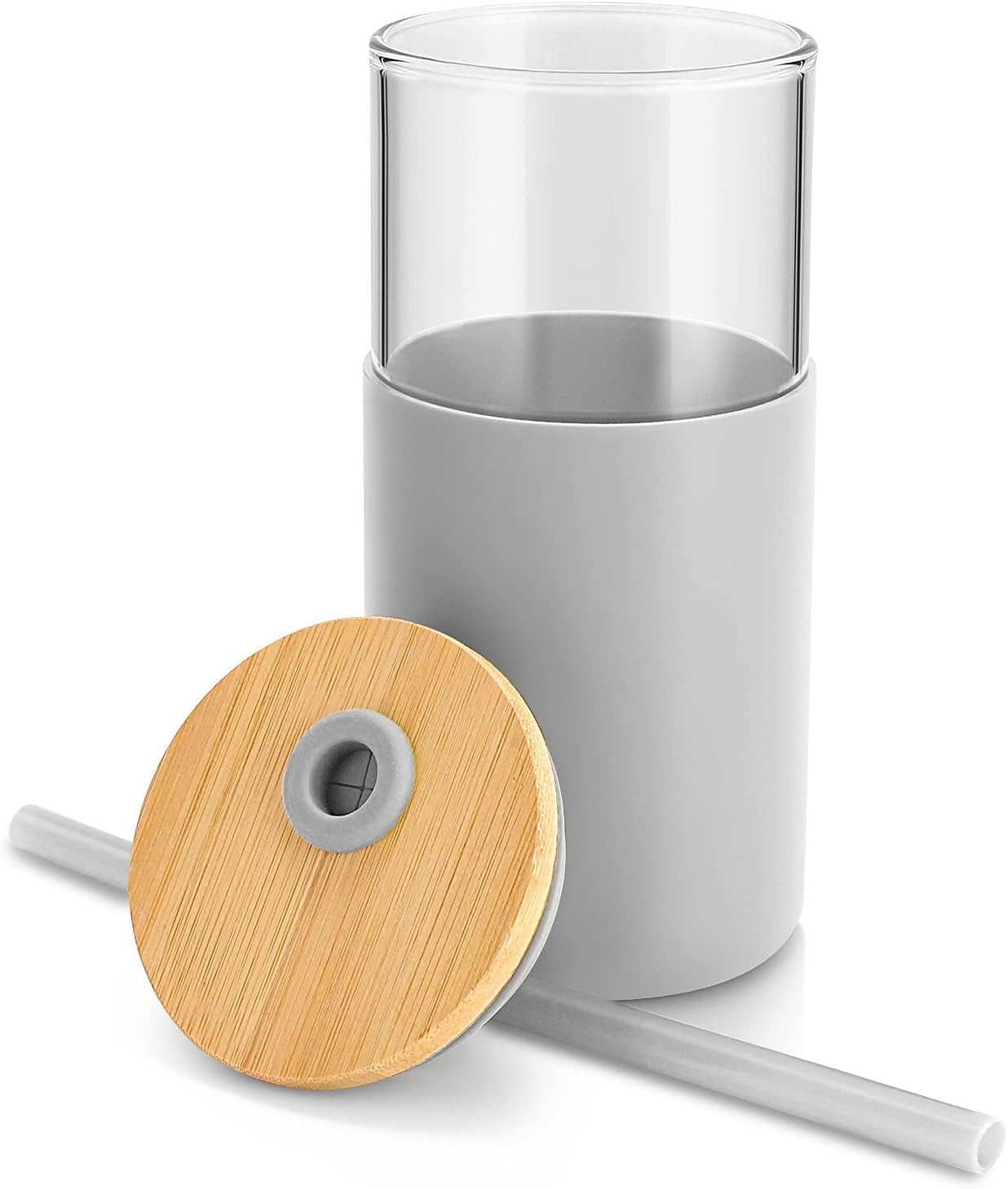 Tronco 16 oz Glass Tumbler with Straw and Bamboo Lid, Iced Coffee Cup Reusable, Smoothie Cups, Tumbler with Silicone Protective Sleeve - BPA Free