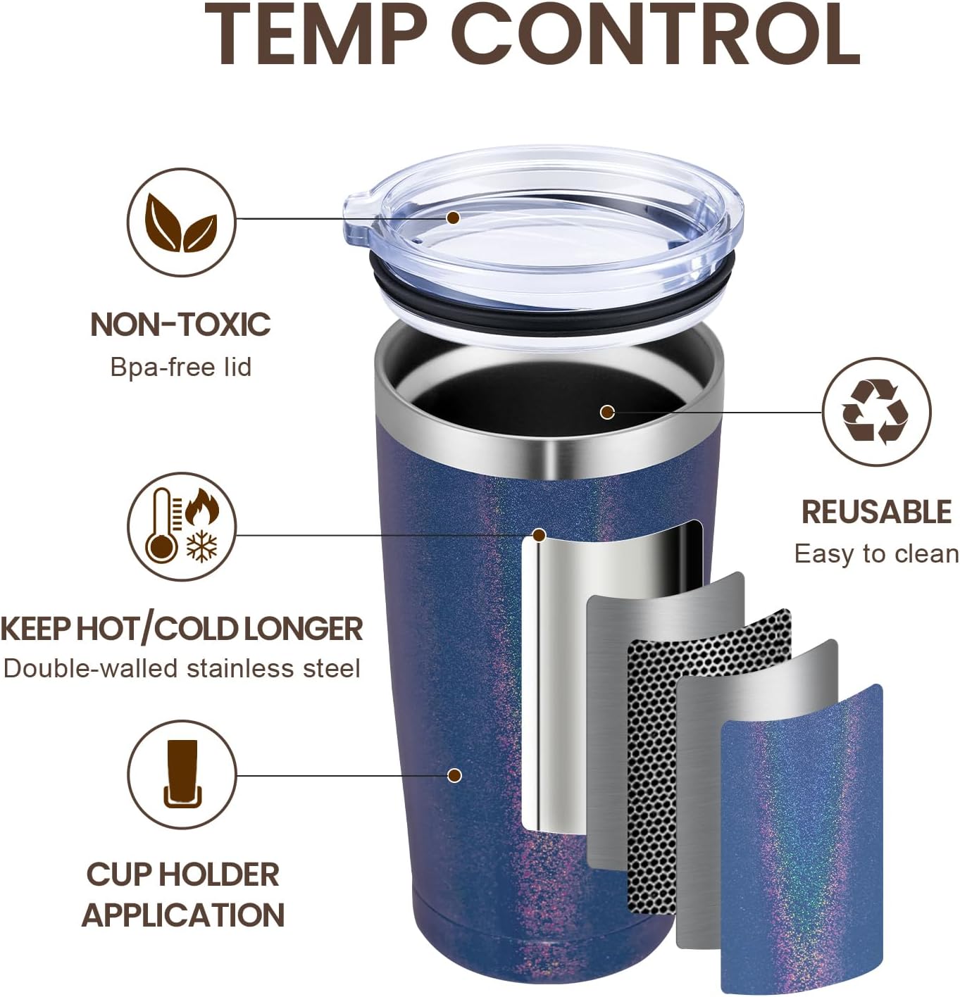 - [Package included]4*20 oz glitter tumbler,4*splash proof cover with hole, 4*bent stainless steel straw, 2*straw brush
