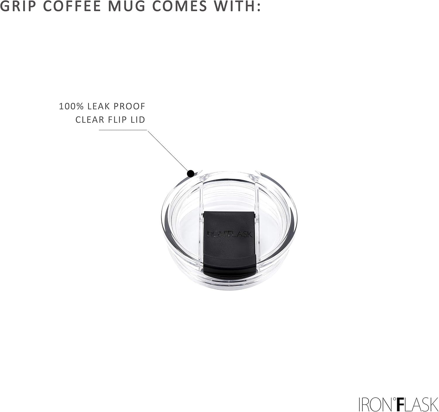 IRON °FLASK Grip Coffee Mug - Leak Proof, Vacuum Insulated Stainless Steel Bottle, Double Walled, Thermo Travel, Hot Cold, Water Metal Canteen - Fire, 24 Oz - Rubber Bottom