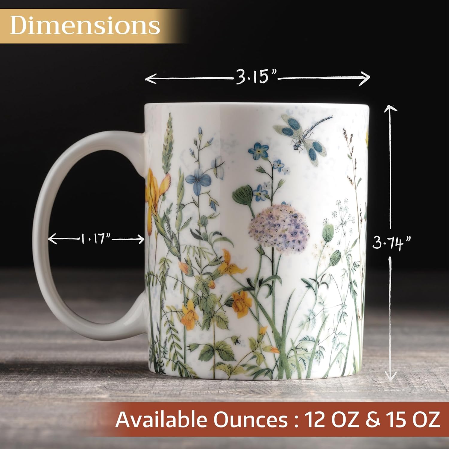 - Package Includes: 1 fine bone china coffee mugs, each with a 12 oz capacity. Designed in Europe and made in India, these beautifully crafted mugs combine elegant style with everyday practicality for your kitchen or dining set