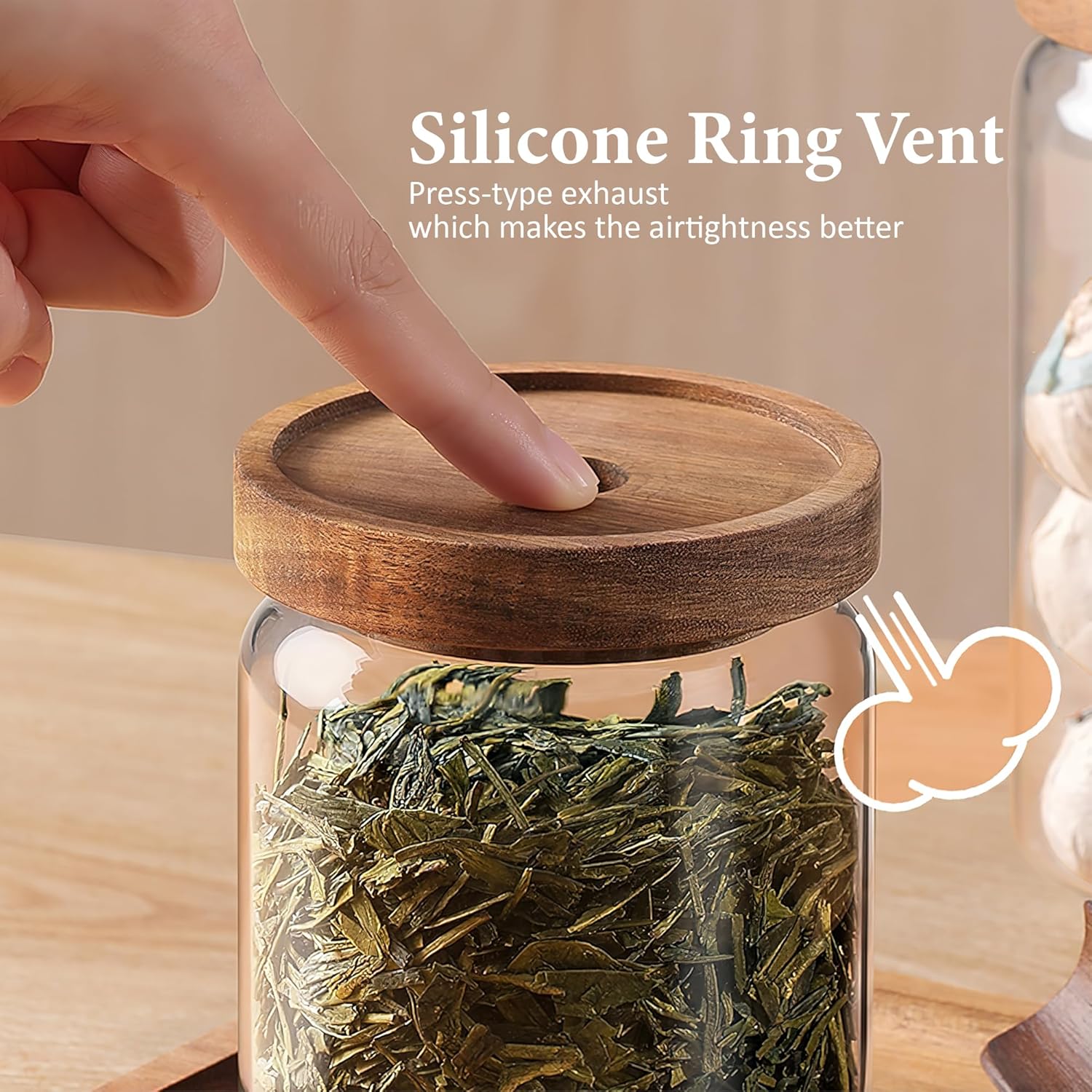 - PREMIUM MATERIAL -- This MOLADRI clear glass jar is made of high-grade borosilicate glass, thick enhanced wall, capable of withstanding thermal shock, scratch, and break resistant. The air tight flat lid is made from natural wood and create you a healthy life.