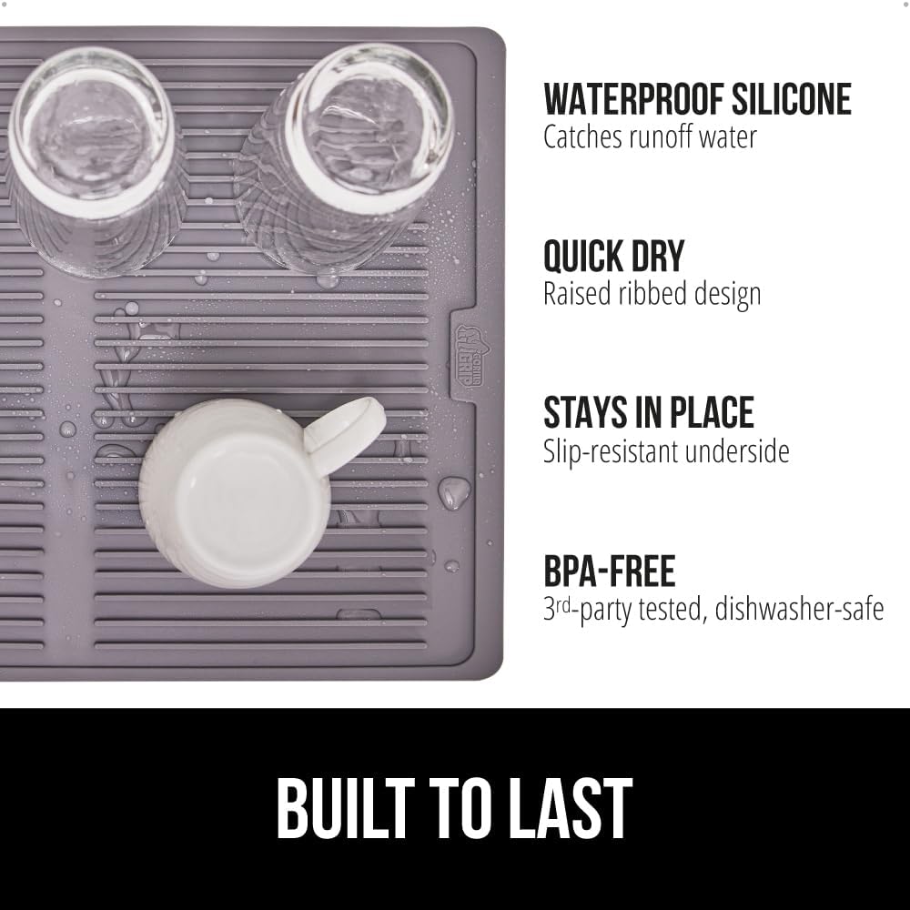 GORILLA GRIP 100% BPA-Free Patented Silicone Dish Drying Mat for Kitchen Counter, 18x16 Inch, Water Catching Ribbed Design, Easy Clean Waterproof Sink Liner, Heat Resistant, Fits Under Rack, Gray