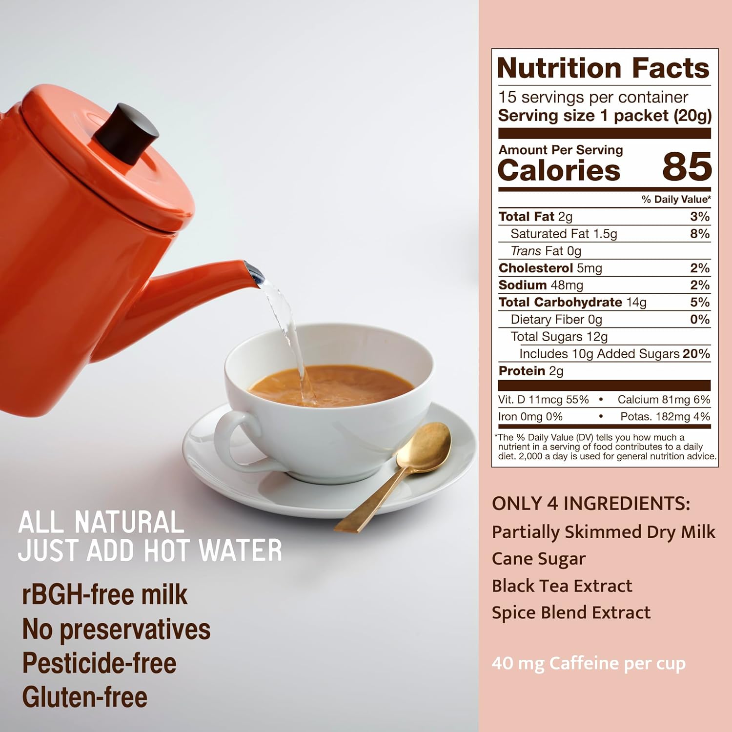 Jaipur Avenue Vanilla Chai Tea Mix Crafted with All-Natural Assam Black Tea, Vanilla, Cane Sugar, and Premium Dry Milk - Preservative-Free, Gluten-Free, Authentic Indian Chai Tea Latte (15 Servings)