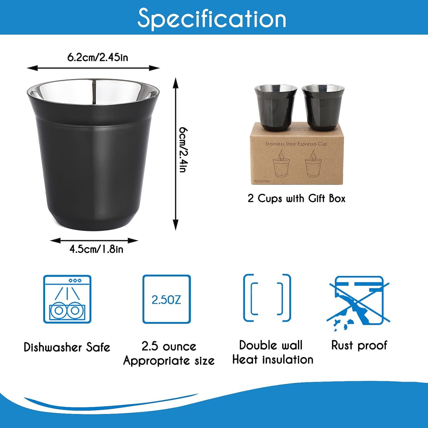 Easyworkz Stainless Steel Espresso Cup 2pcs Set Double Wall Insulated Metal Demitasse Cups 2.5 oz