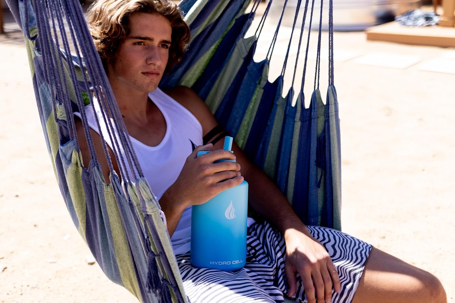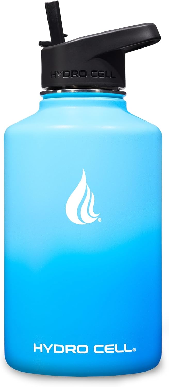 HYDRO CELL Stainless Steel Insulated Water Bottle with Straw - For Cold & Hot Drinks - Metal Vacuum Flask with Screw Cap and Modern Leakproof Sport Thermos for Adults (Sky/Blue 64oz)