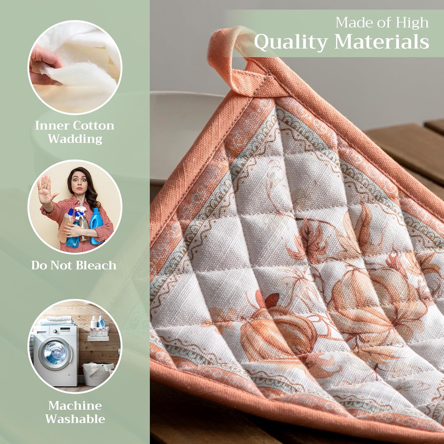 Maison d' Hermine Pot Holders 100% Cotton Heat Resistant Potholders 8" x 8" Hot Pads with Loop BBQ, Cooking, Baking, Grilling, Kitchen, Handling Hot Pans (Pack of 1, Giving Thanks)
