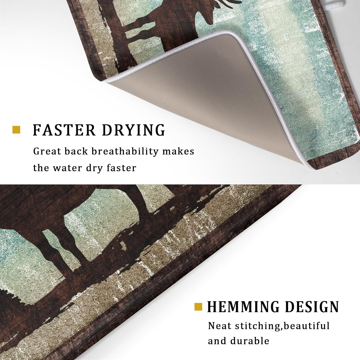- ❀ 【SPECS & WATERPROOF BACKING】 Made of absorbent fabric, 3-ply polyester of this Retro Deer Dish Drying Mat provides a soft cushion. 24" X18", fitting most counters snugly while providing a smart and sharp look. Moreover, the waterproof backing stops liquids from soaking through, damaging or staining the surface below and allows moisture to evaporate quickly at the same time.
