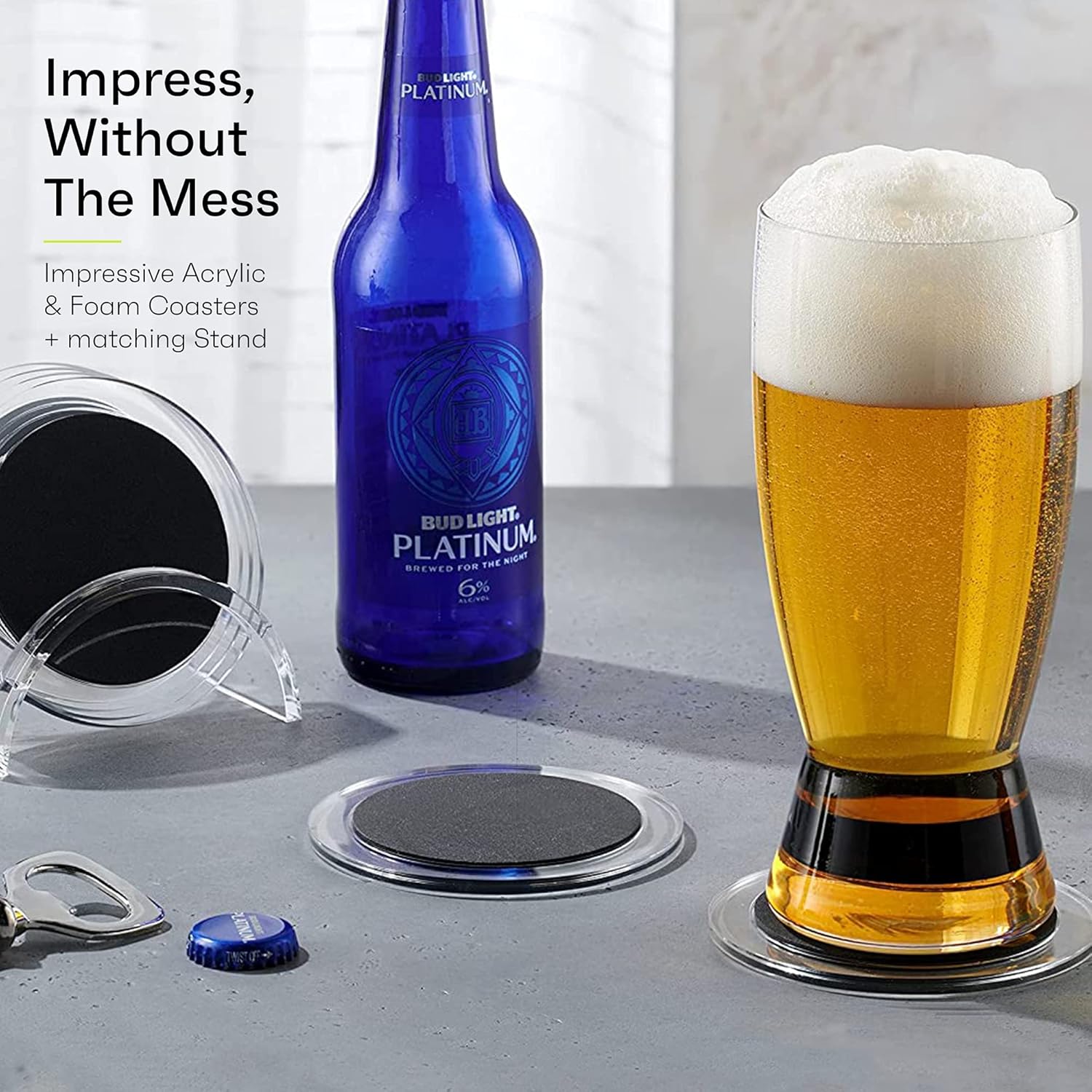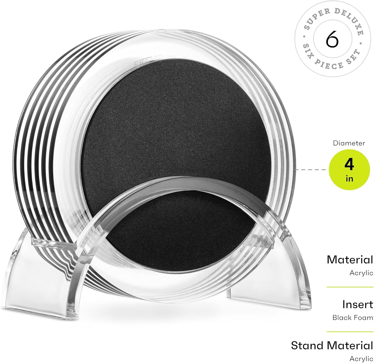 Acrylic Drink Coasters Set of 6 | Premium Stylish Black 4 Inch Coaster Set for Tabletop, Coffee Table Protection | Coasters Will Not Scratch Your Wood Tables or Stick to Glass | Home Decor Accent