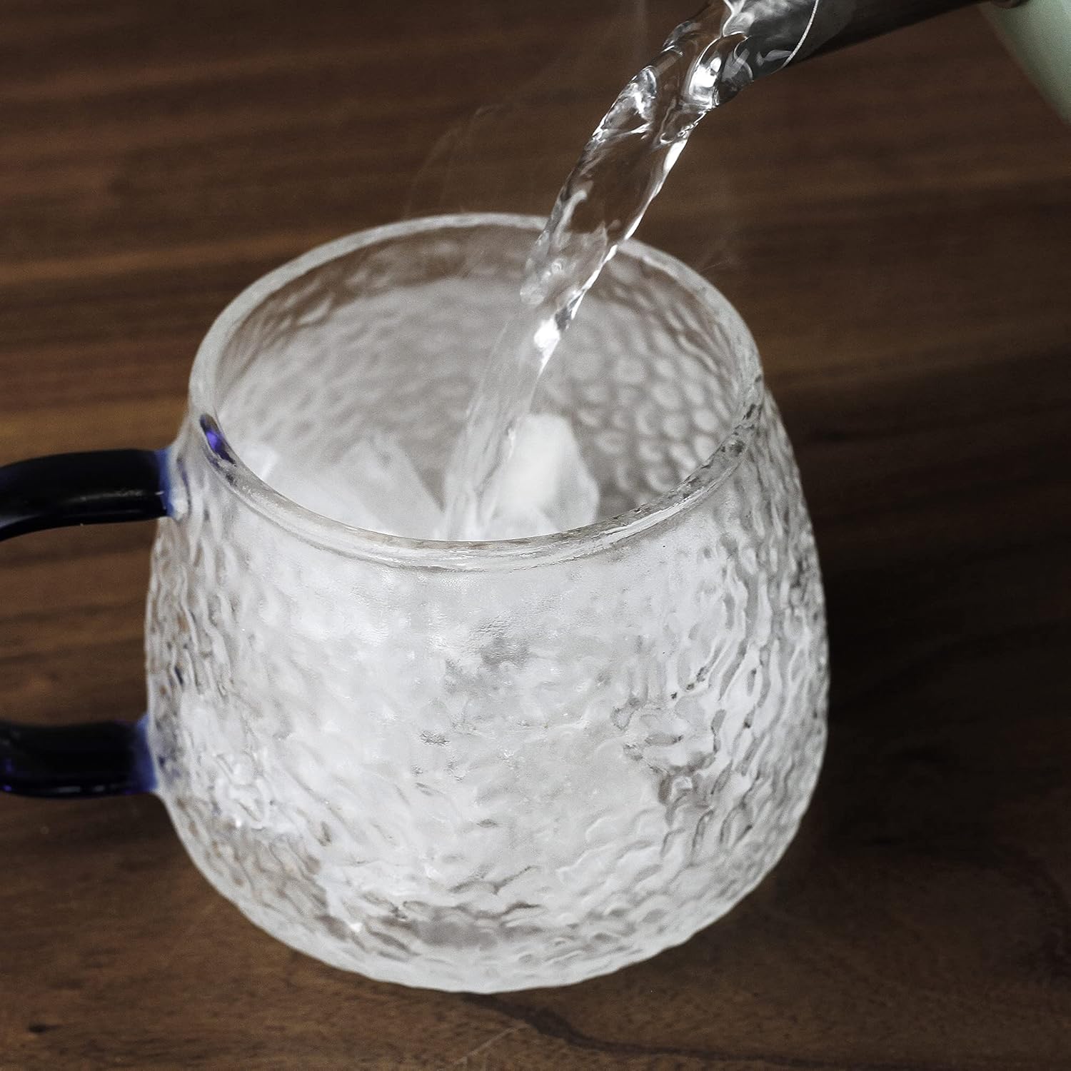 - UNIQUE SNOW DOT HAMMERED DESIGN - This high-quality clear glass water cup adopts a unique hammer design, exquisitely crafted, with fine and clear texture,and a comfortable feel.The creative snowflake hammer texture is like a sparkling water surface,which reflects a different kind of brilliance under the light.It is an indispensable lead-free glassware on your dining table or desk.