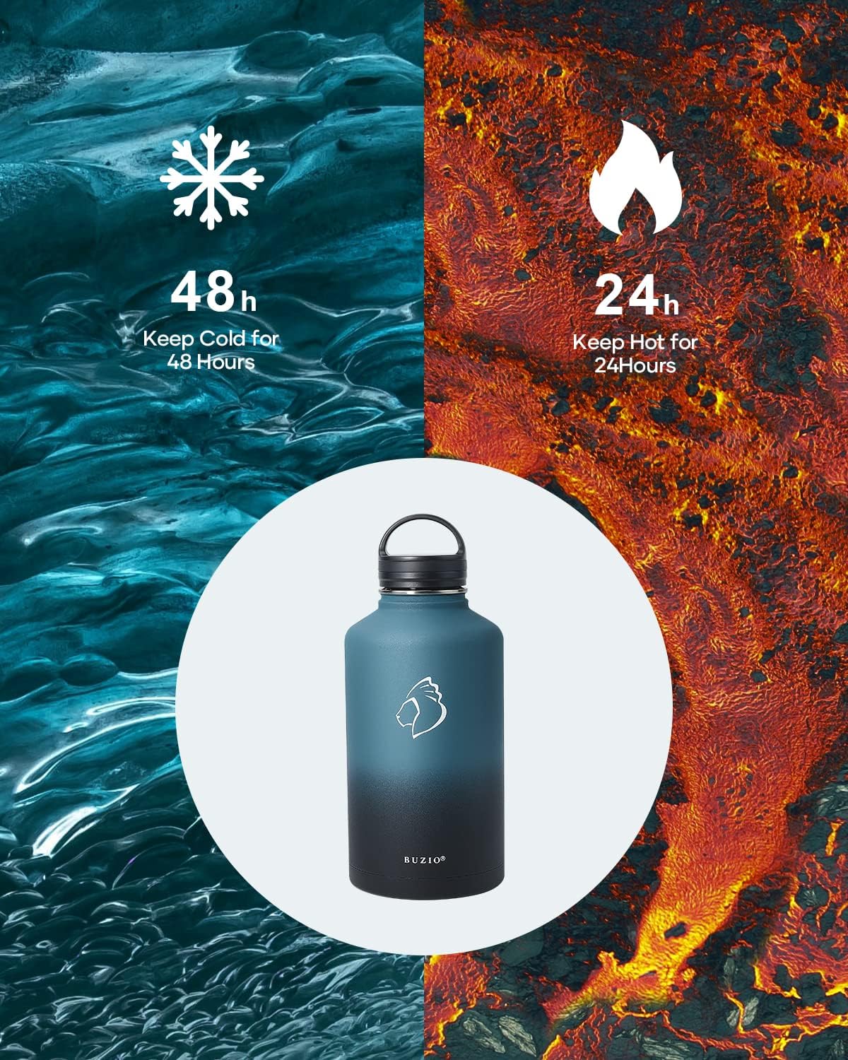 - Super Deal Combo: Buy 64oz insulated water bottle, get 7 accessories, a worry-free lifetime warranty, and friendly customer service. BUZIO water bottle with a delicate packaging box works as a perfect gift for your loved ones.