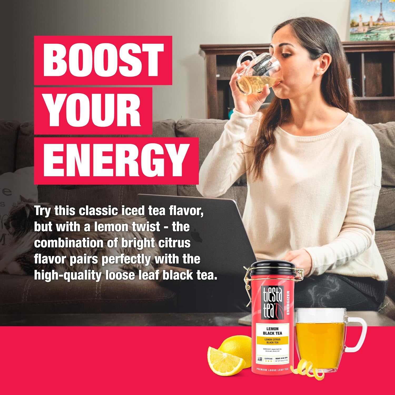 Tiesta Tea - Lemon Black Tea, Loose Leaf, Lemon Citrus Black, Premium Blend, High Caffeinated, Makes Hot or Iced, Brews Up to 50 Cups, 5oz Refillable Tin