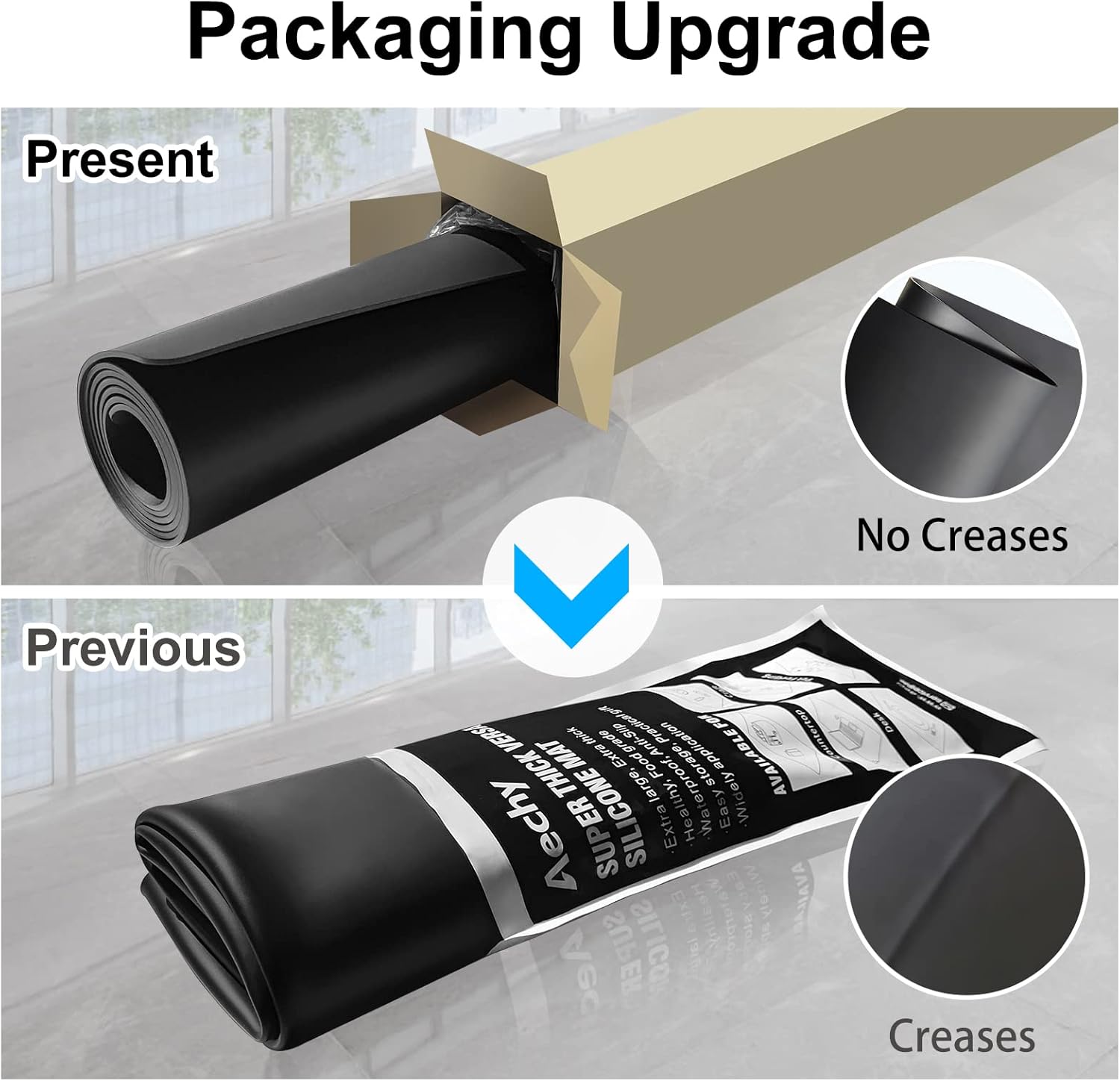 - 【ROLL UP AND SHIP 】: AECHY silicone kitchen counter mat packaging is upgraded from folding to rolling, in order to provide customers with a better experience. You will no longer suffer from mat crease. The 35.3"x23.5"x0.08" extra large silicone mat is big enough to meet your needs about protecting all size countertop. One dollar coin thickness, up to twice as thick as regular silicone craft mat. The mat lay flat without any wrinkle, stronger and more durable.