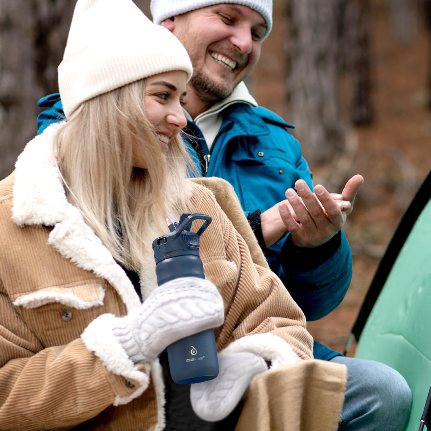 - VACUUM INSULATED WATER BOTTLE -IDEUS sports water bottle is made of high-performance food-grade stainless steel which helps the refillable water bottles to retain the cold or heat. Effective insulation with a sports lid & handle lid helps to maintain the temperature up to 24 hours for cold and 12 hours for hot beverages. This reusable water bottle is safe and easy to clean.