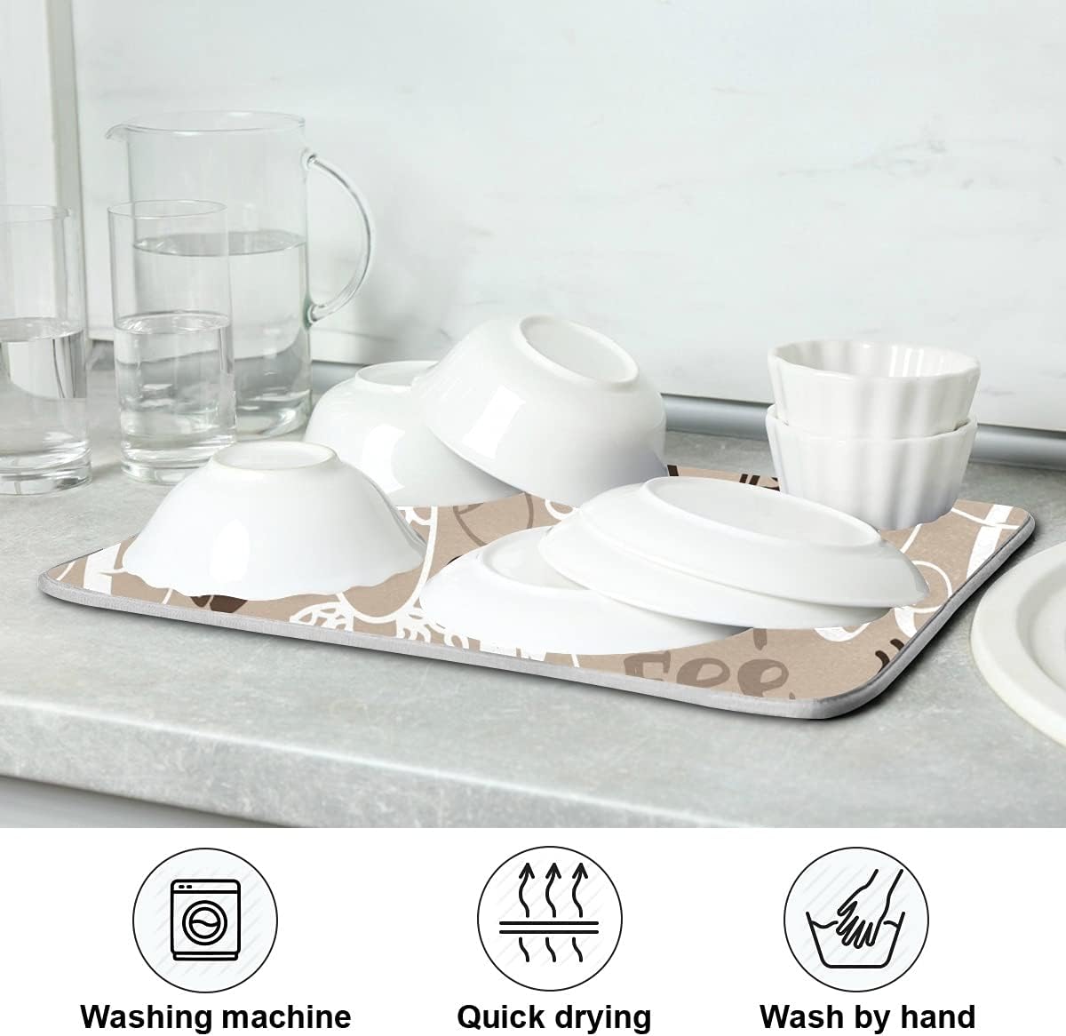 - 2【Widely Used】: The coffee themed kitchen mats for kitchen counter countertop, coffee bar, dish drain rack, great for air drying dishes, glasses, silverware, pots, pans, fruits and vegetables. Medium size 18" X16" and Extra-large size 24" X18 " fits most counters, you can choose your own size.