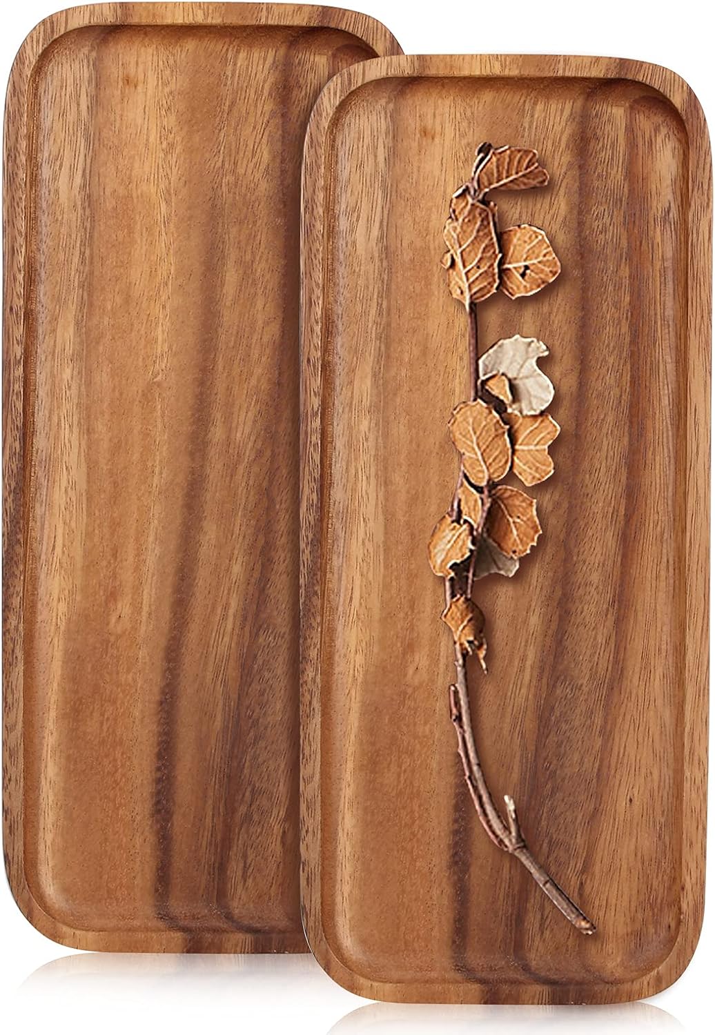 2 Pcs Small Rectangular Wooden Tray Decorative Acacia Wood Appetizer Cheese Plates Small Sandwich Dessert Trays Rectangle Serving Platter for Decor Snacks Plate Food Dish Charcuterie Boards