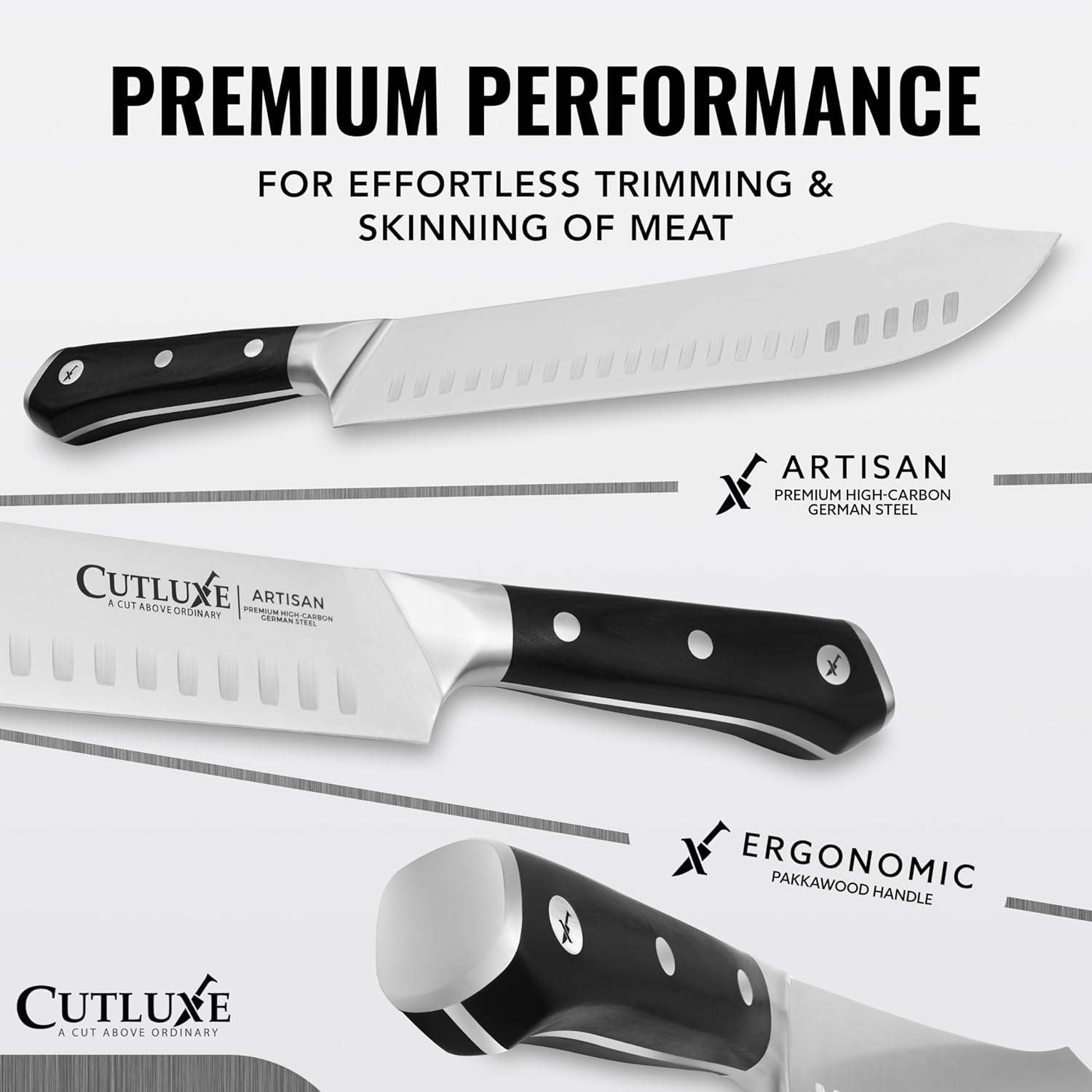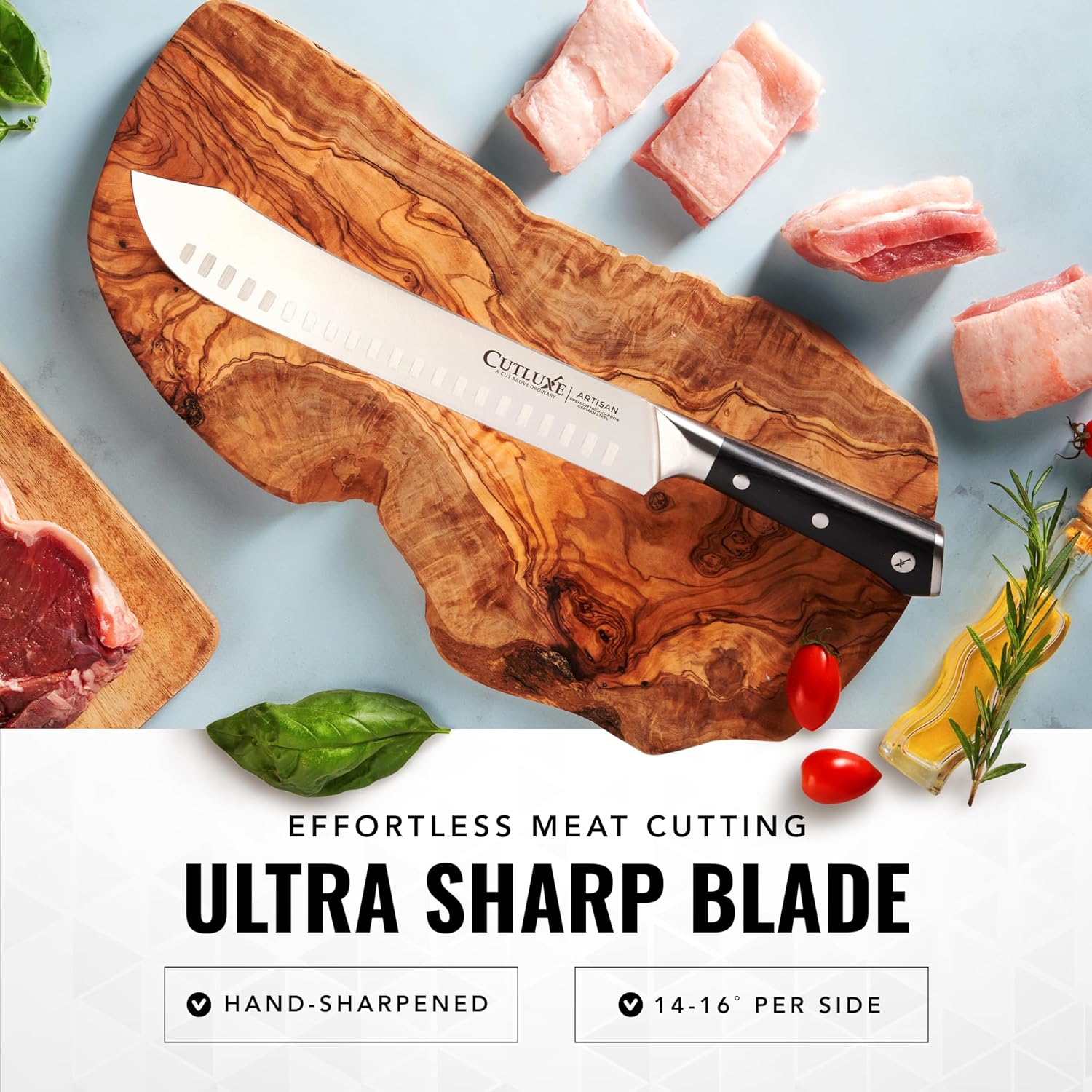 Cutluxe Butcher Knife – 10″ Bullnose Carving Knife, Forged High Carbon German Steel – Full Tang & Razor Sharp – Ergonomic Handle Design – Artisan Series