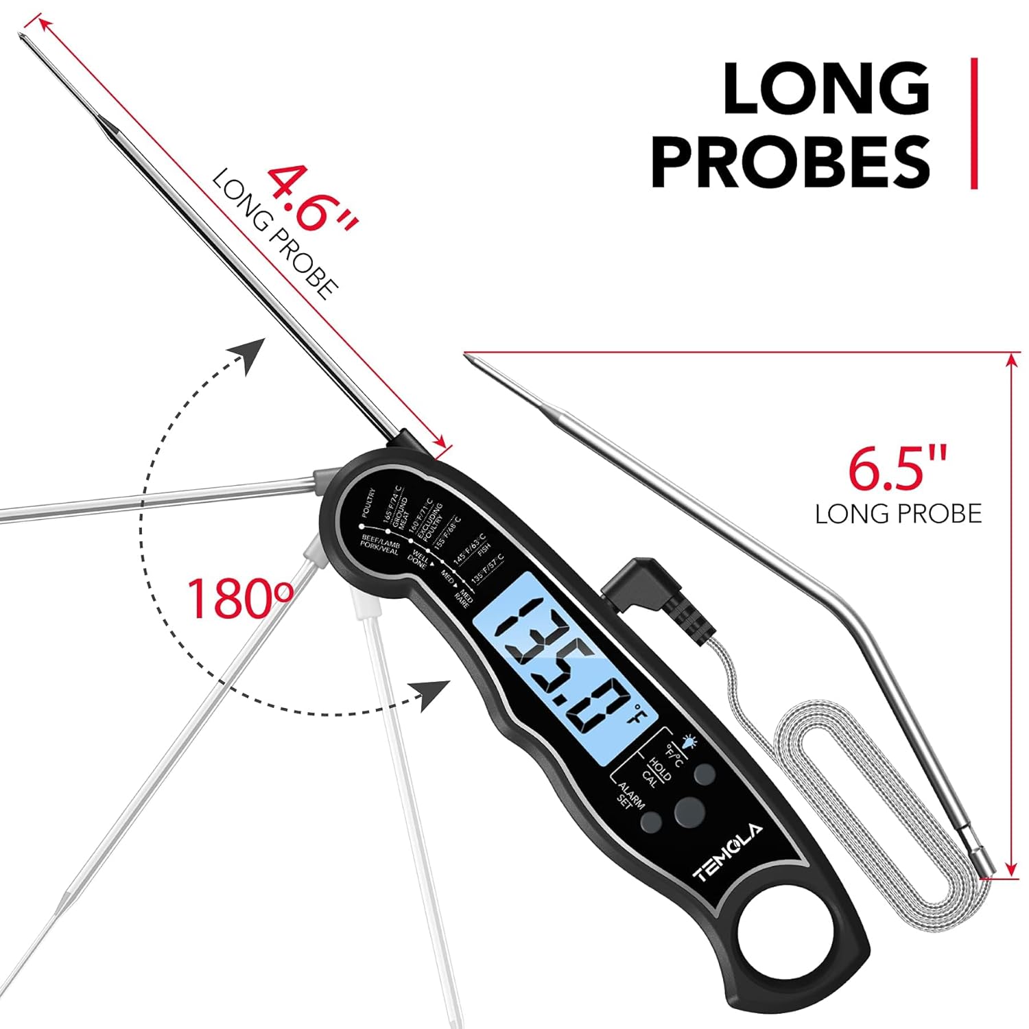 TEMOLA Meat Thermometer, Instant Read Food Thermometer for Cooking, Digital Food Thermometer with LCD Backlight for Candy Fry Grill BBQ Liquids, Kitchen Oven Safe Dual Probe 2 in 1 Thermometer