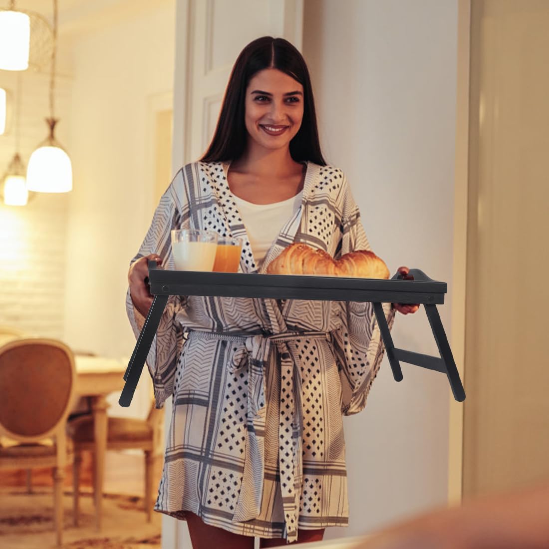 Multi-Purpose Bamboo Wood Lap Desk - Folding Legs, Breakfast Food Tray, Serving Dinner Tea TV Tray - Lightweight, Minimalist Black