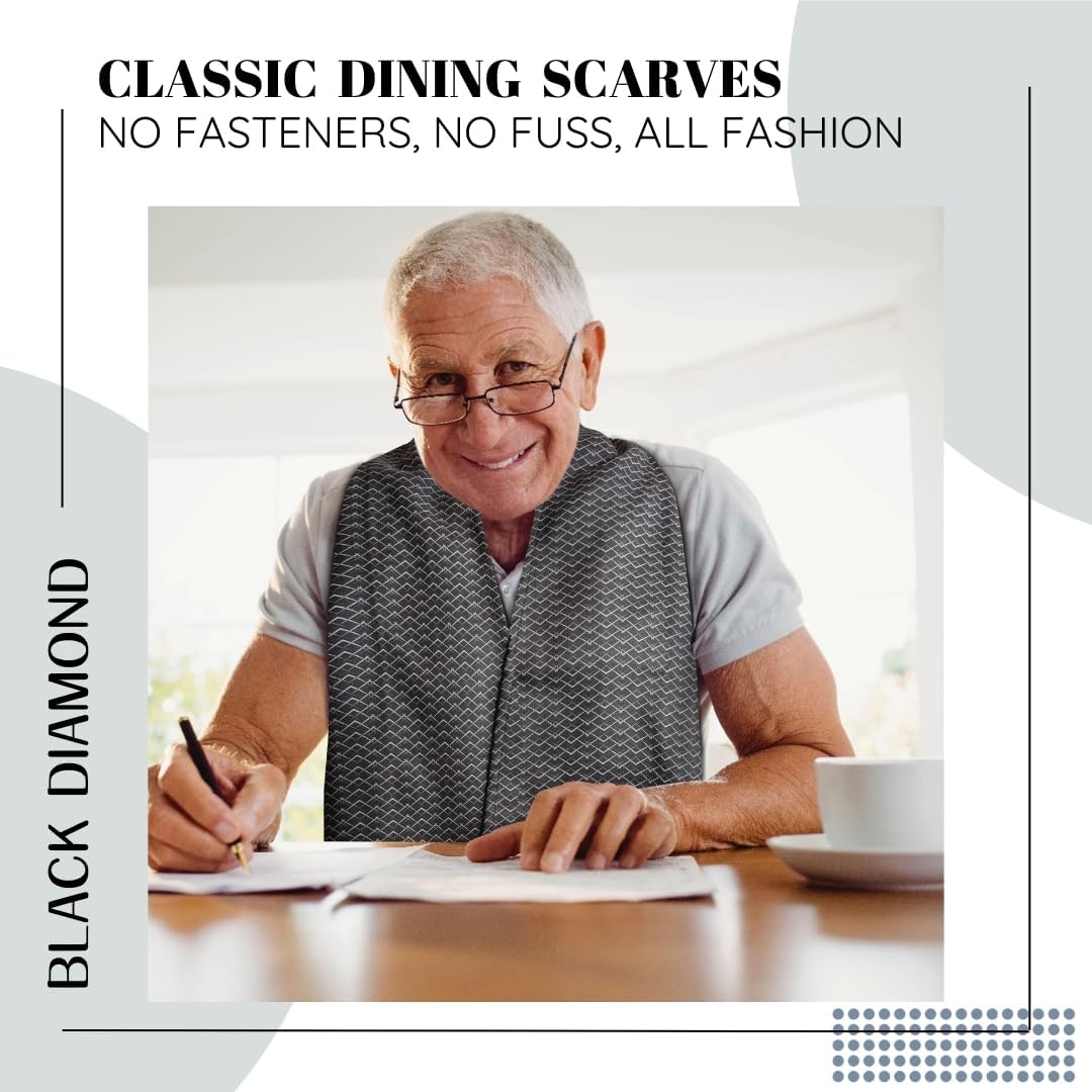 - 🎁 STAY DIGNIFIED & FASHIONABLE with our senior bibs scarves specifically designed to uphold the dignity of senior citizens. Wearing a “grown-up bib” is depressing and humiliating for many of our loved ones. Designed to Dine adult bib scarves allow our seniors to maintain a stylish and dignified look while dining with friends and family. Adaptive clothing to protect both your shirt and your dignity.