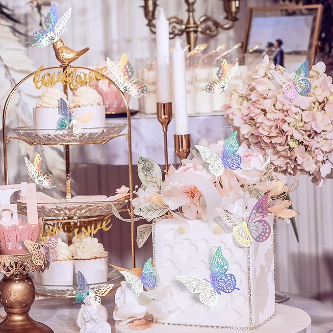 SAOROPEB 3D Butterfly Wall Decor - 48 Pcs, 4 Styles, 3 Sizes - Removable Stickers (Laser)