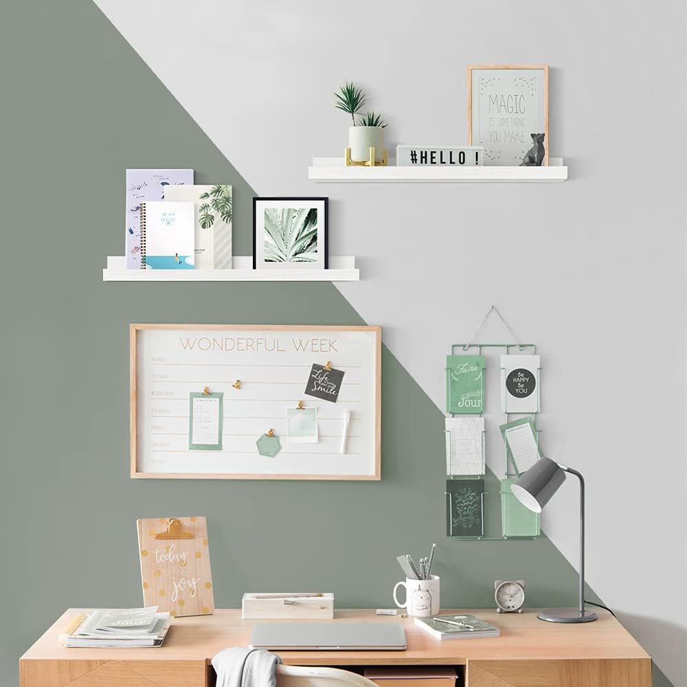 - 【Perfect solution for your walls】The 24 inch floating nursery shelves for wall & picture ledge shelf is SAME SIZE as each other (L 23.1" x D 4.5" x H 2.2") and is such an easy way to display photos without making lots of holes in your walls. The nursery book shelves are crafted from Paulownia wood which are lightweight yet proportionately strong, sustainable real wood. They come fully assembled and all mounting hardware is included in the package. Sturdy enough to hold up to 20 lbs with proper installation.