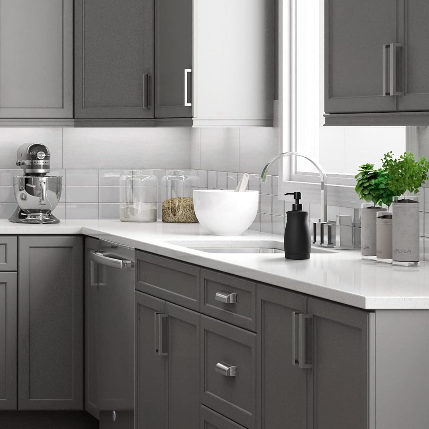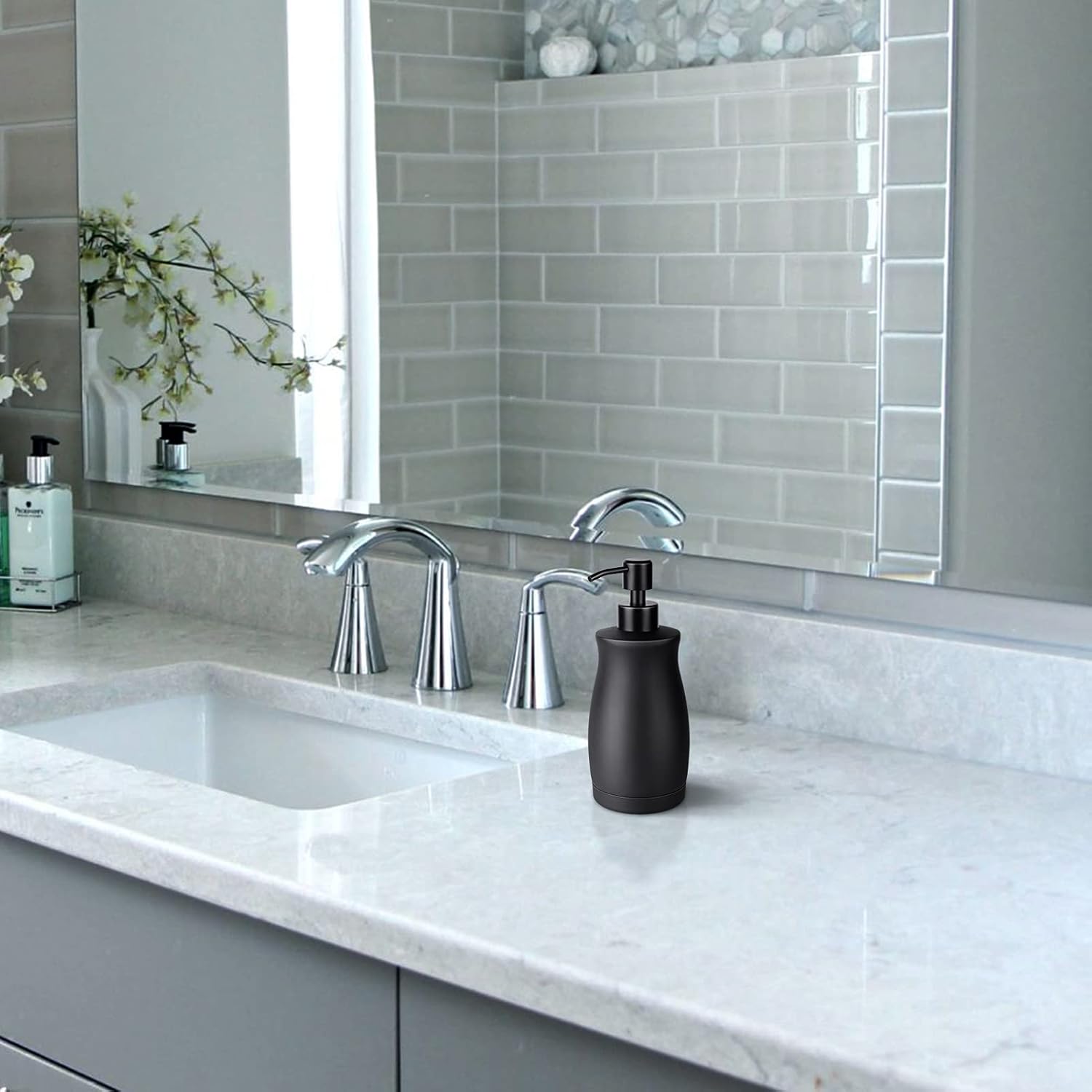 - ♛Sleek and modern design - Our black stainless steel soap dispensers have a sleek and modern design that complements any bathroom or kitchen decor, making it the perfect addition to your home.