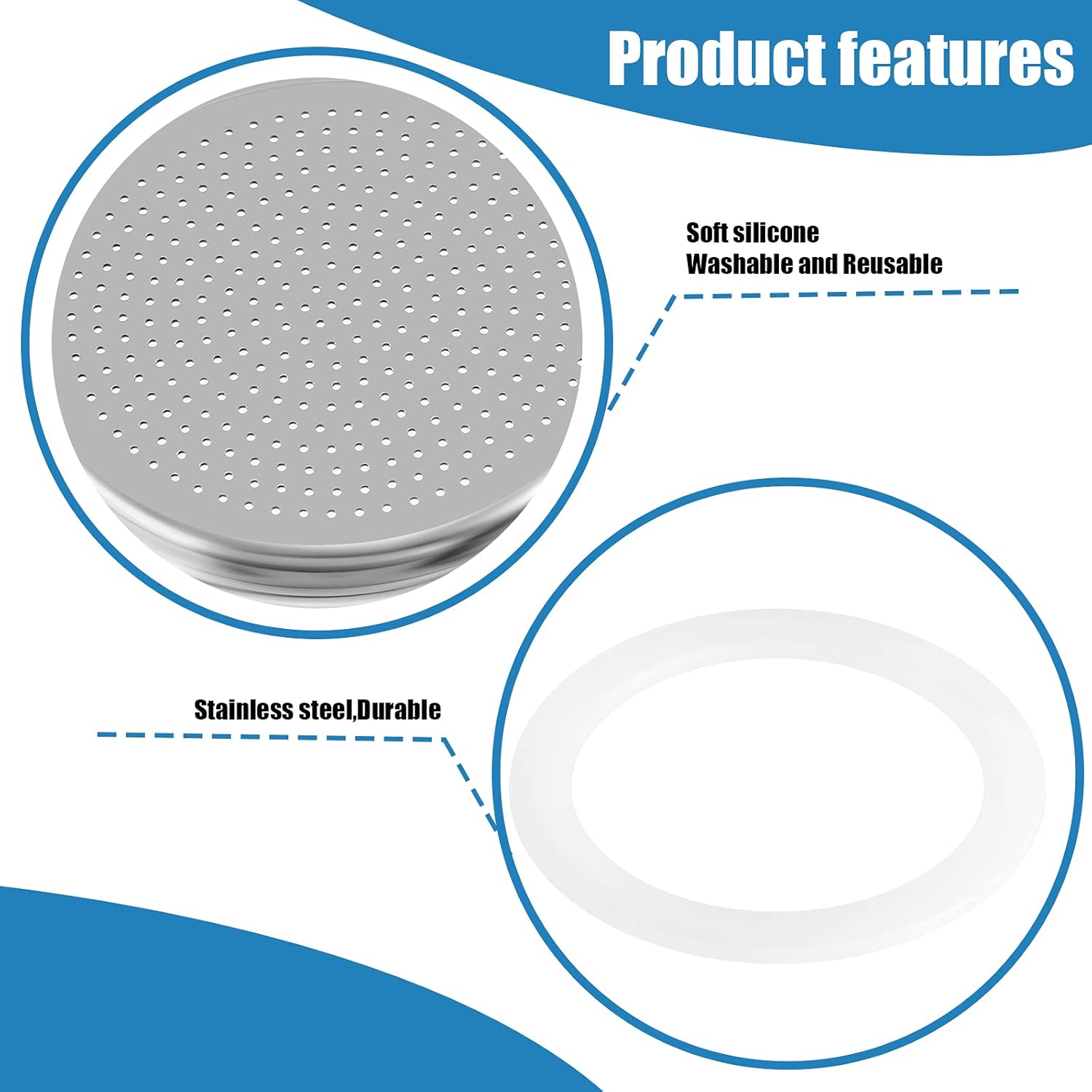 - What you will receive: the package includes 6 pieces silicone gaskets and 2 pieces stainless filter gaskets; 2 Cup: the silicone gaskets outer diameter of 2.2 inch; The filter screens outer diameter of 1.9 inch