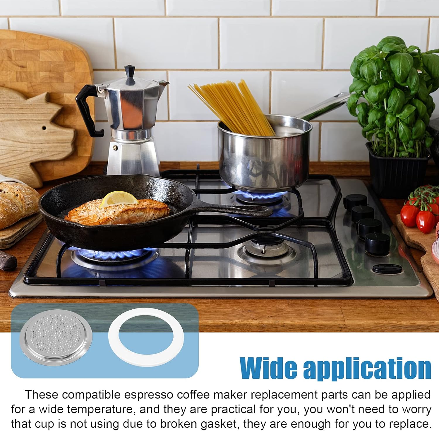 - Suitable size: these replacement gaskets and stainless steel filters can be compatible with 3-cup stainless steel espresso models, Φ50mm/2",Φ50mm/2",Φ64mm/2.5",Φ59mm/2.3",please measure the size of your pot before purchasing