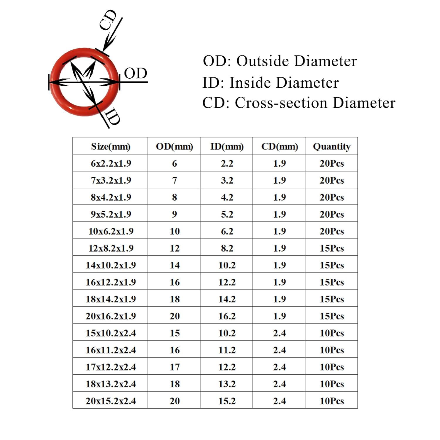 - [15 Different Sizes with Case] - Total 225 Pcs.15 Different Metric OD Sizes from 6mm to 30mm. Come with a separated clear plastic storage case.