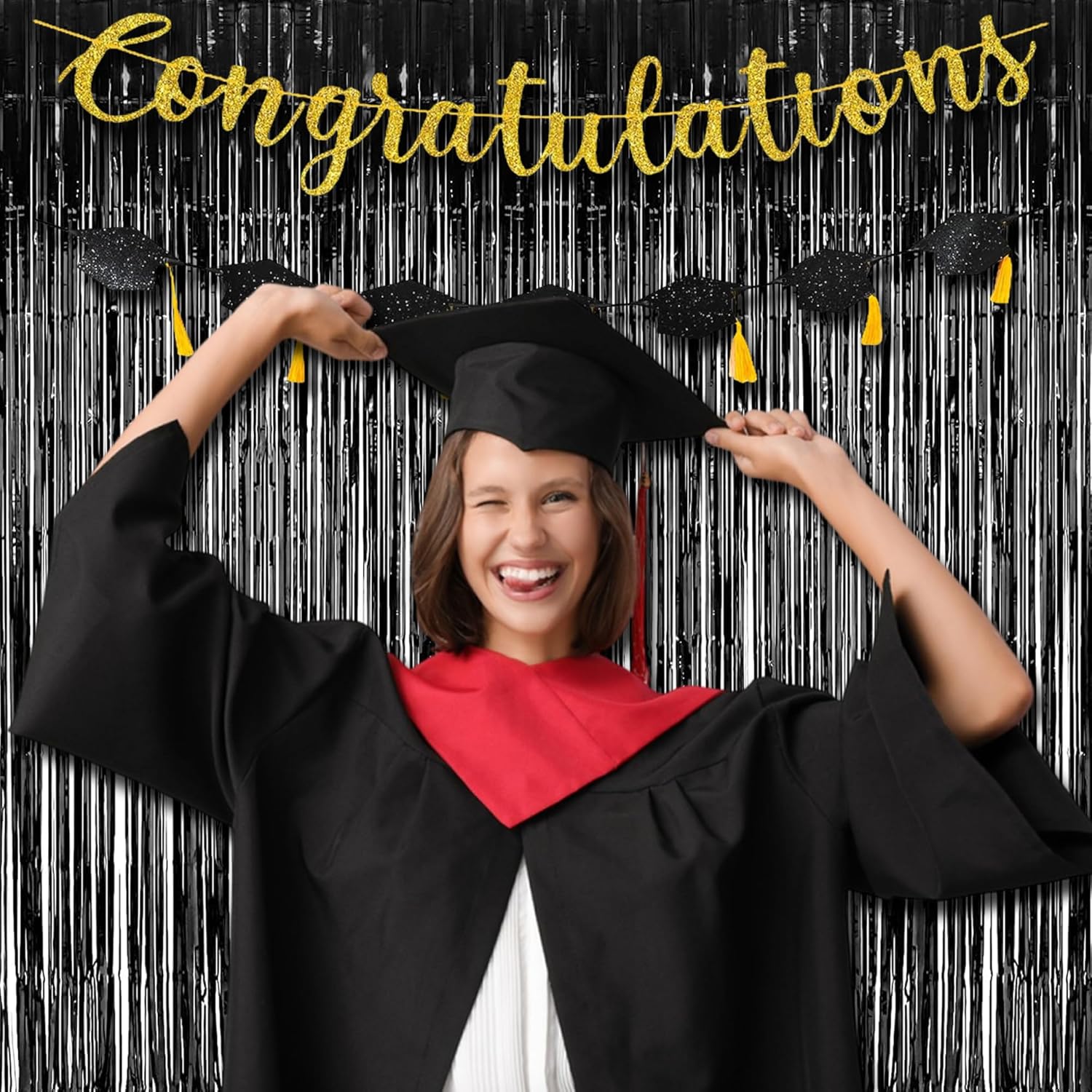 - Package Included: 2 Pack Foil Tassel Party Curtain Backdrops. If you want to make your tinsel backdrop curtain fuller and thicker, you can overlap two foil curtains.