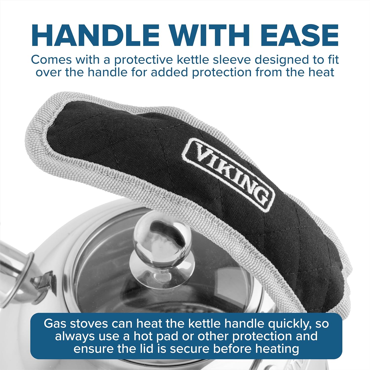 Viking 3-Ply Stainless Steel Tea Kettle, 2.6 Quart Stovetop Hot Water Pot with Tempered Glass Lid, Ergonomic Handle, Induction Ready, Mirror Finish