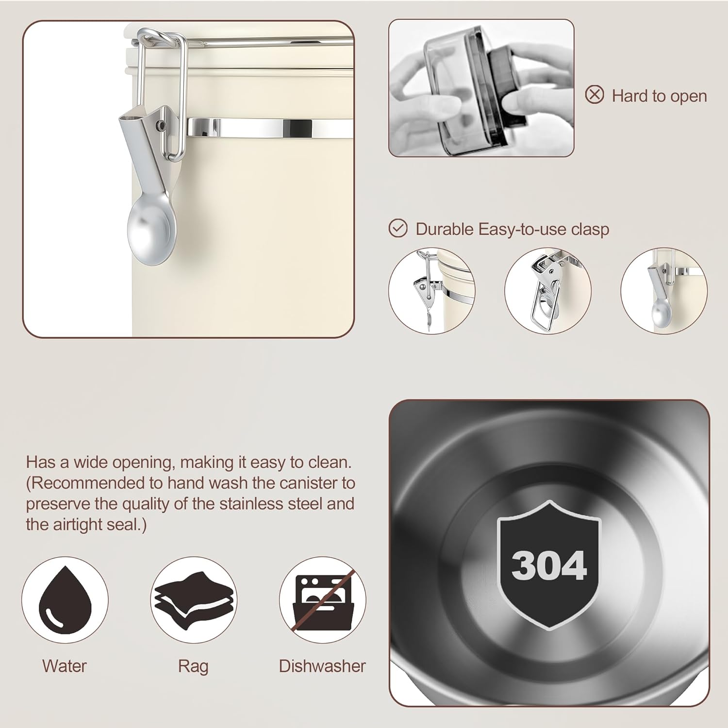 - 【CARE & WARRANTY】Backed by a 1-year warranty for peace of mind. Designed with a color-coordinated lid and silicone seal, this canister combines function with visual appeal, making it a must-have for any kitchen. To clean, simply hand wash with warm, soapy water and dry thoroughly before refilling. Avoid using abrasive cleaners or scrubbing pads that could damage the stainless steel finish. Regularly inspect the silicone seal to ensure proper function, and replace it as needed.