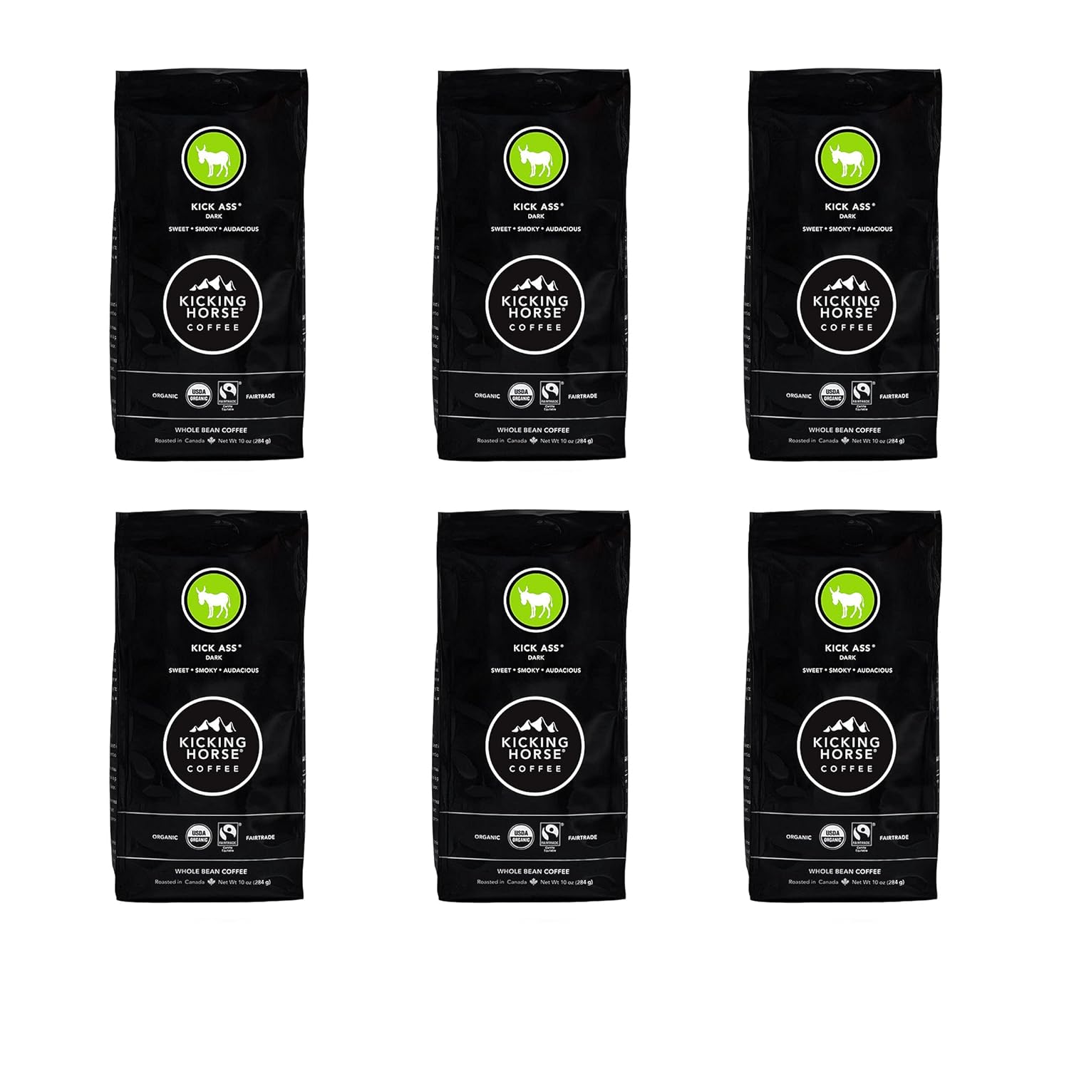 Kicking Horse Coffee, Kick Ass, Dark Roast, Whole Bean, 10 oz - Certified Organic, Fairtrade, Kosher Coffee (Pack of 6),10 Ounce (Pack of 6)