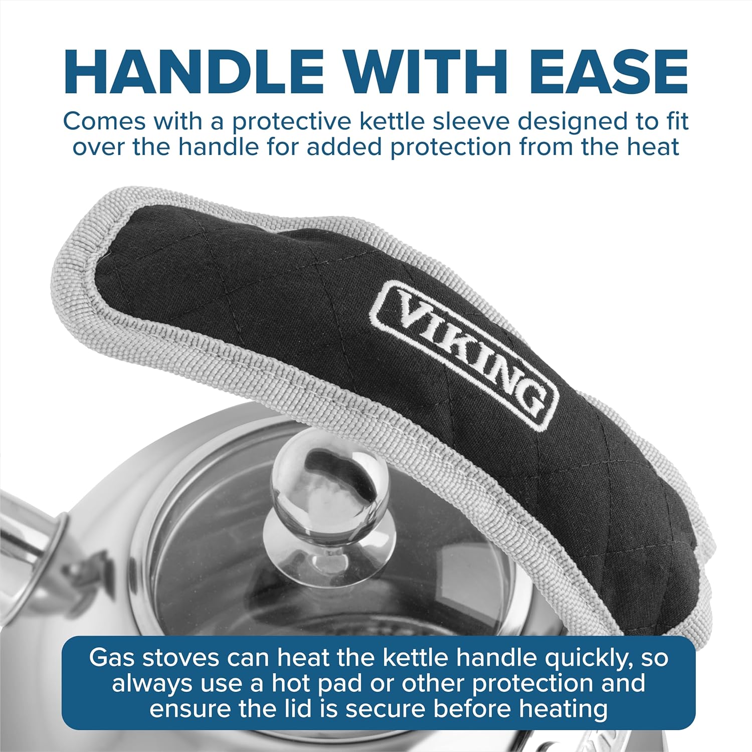 - WHISTLING ALERT SYSTEM: Our large tea kettle features a melodic whistle which signals when water reaches a boil; one-touch spout with heat-protected silicone cover for safe, easy pouring