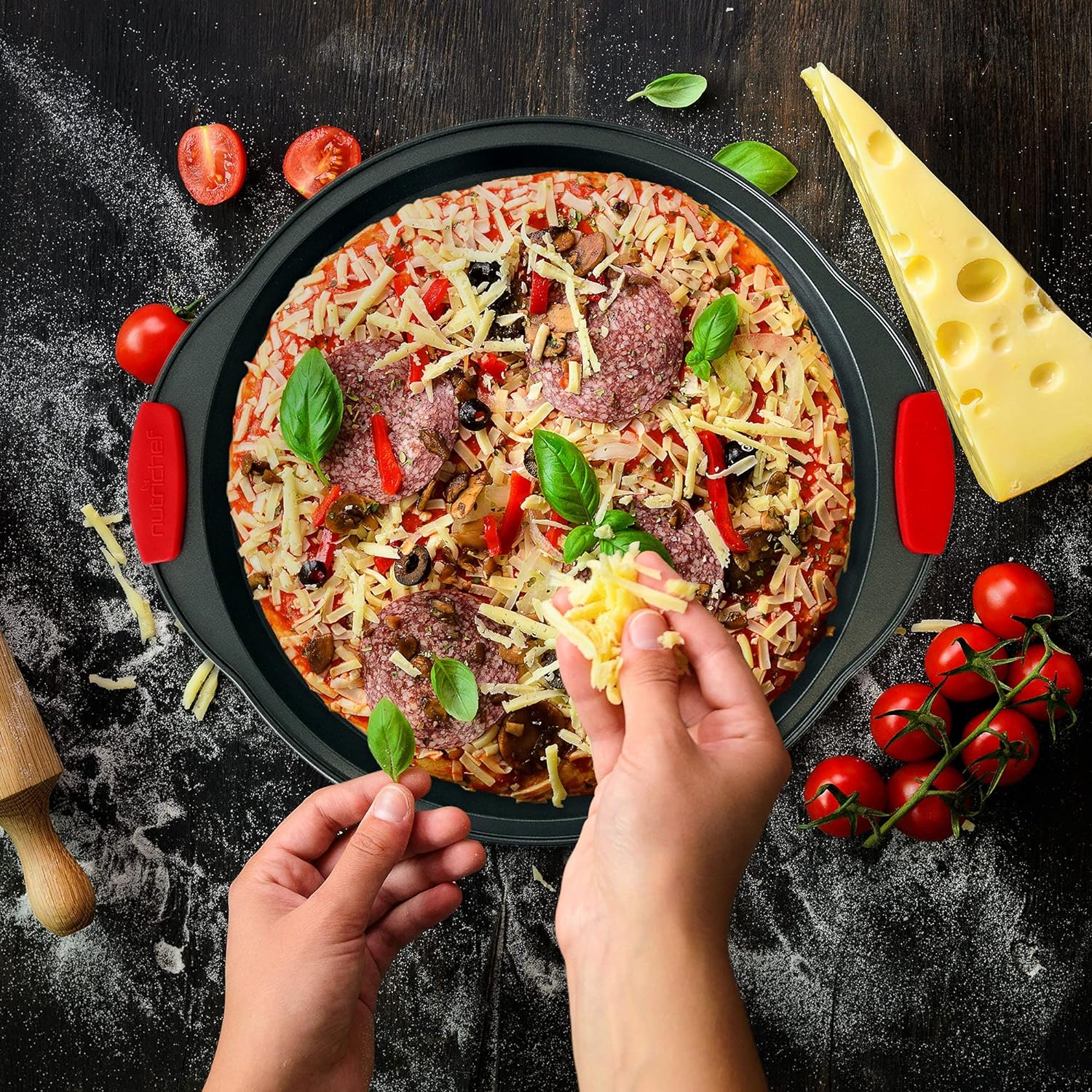 - HEATPROOF SILICONE HANDLES: The commercial grade restaurant quality kitchen bakeware features red silicone handles to prevent accidental burns. Also stain-resistant, easy to clean & dishwasher safe but hand washing is recommended to extend pan life