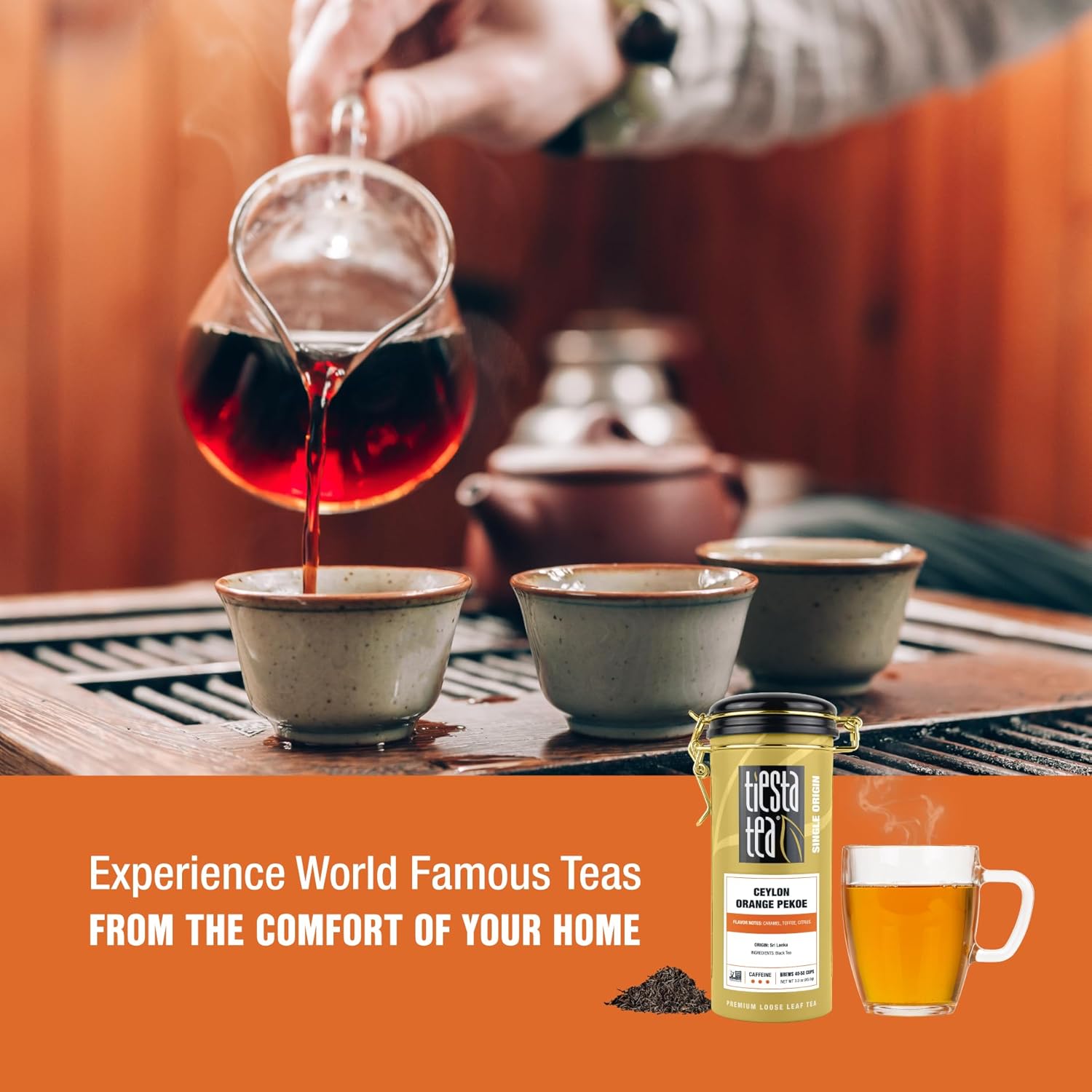 Tiesta Tea - Ceylon Orange Pekoe Black Tea, Loose Leaf, Single Origin Premium Black from Sri Lanka, Pure Unblended High Caffeinated, Hot or Iced Brew & Up to 50 Cups, 3oz Refillable Tin