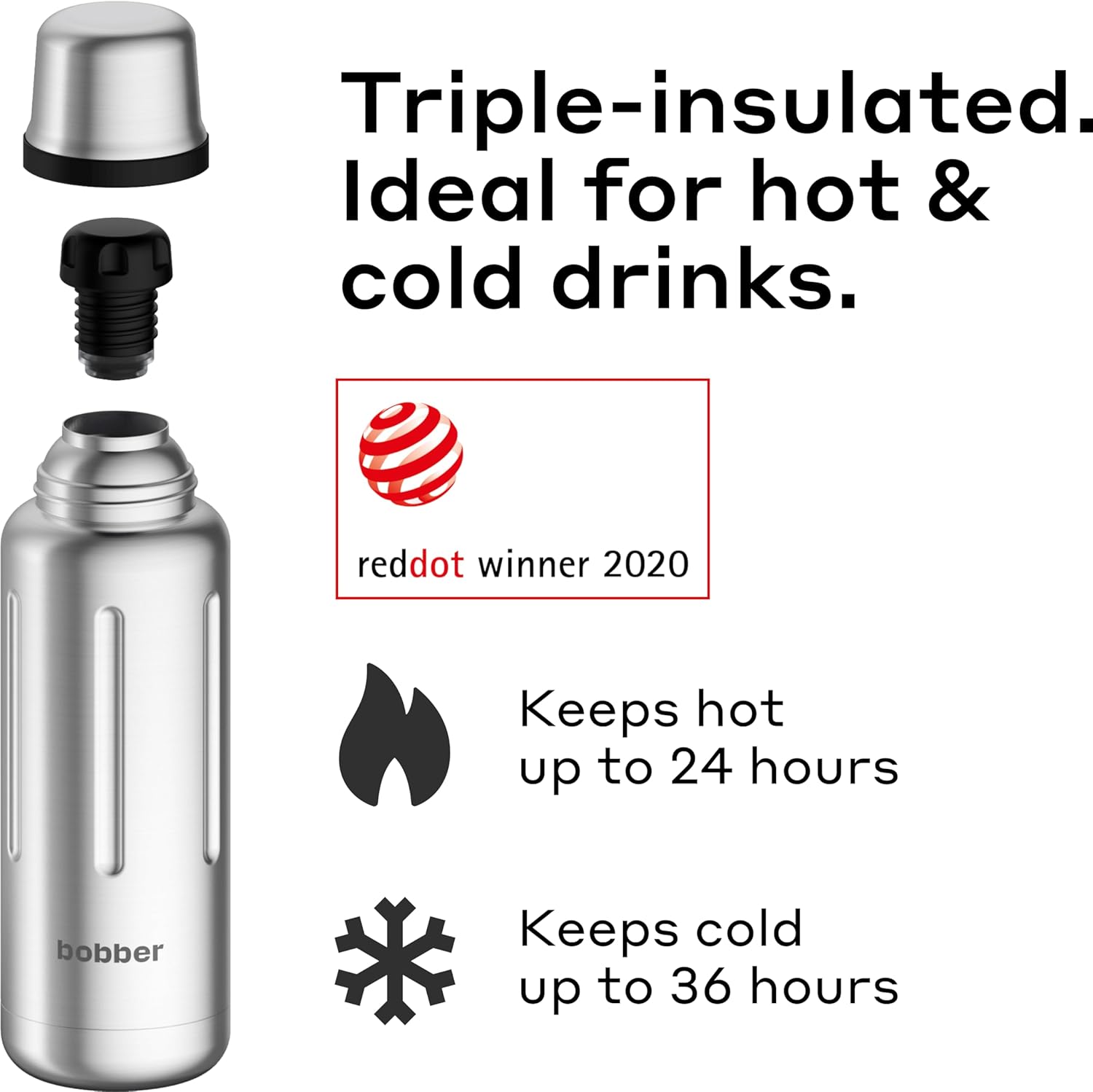BOBBER 16 oz Vacuum Insulated Stainless Steel Water Bottle with Cup Lid – Dishwasher Safe – Keeps Drinks Hot for 24 Hours and Cold for 36 Hours – Triple Walled Coffee Thermos for Hot Drinks (Matte)