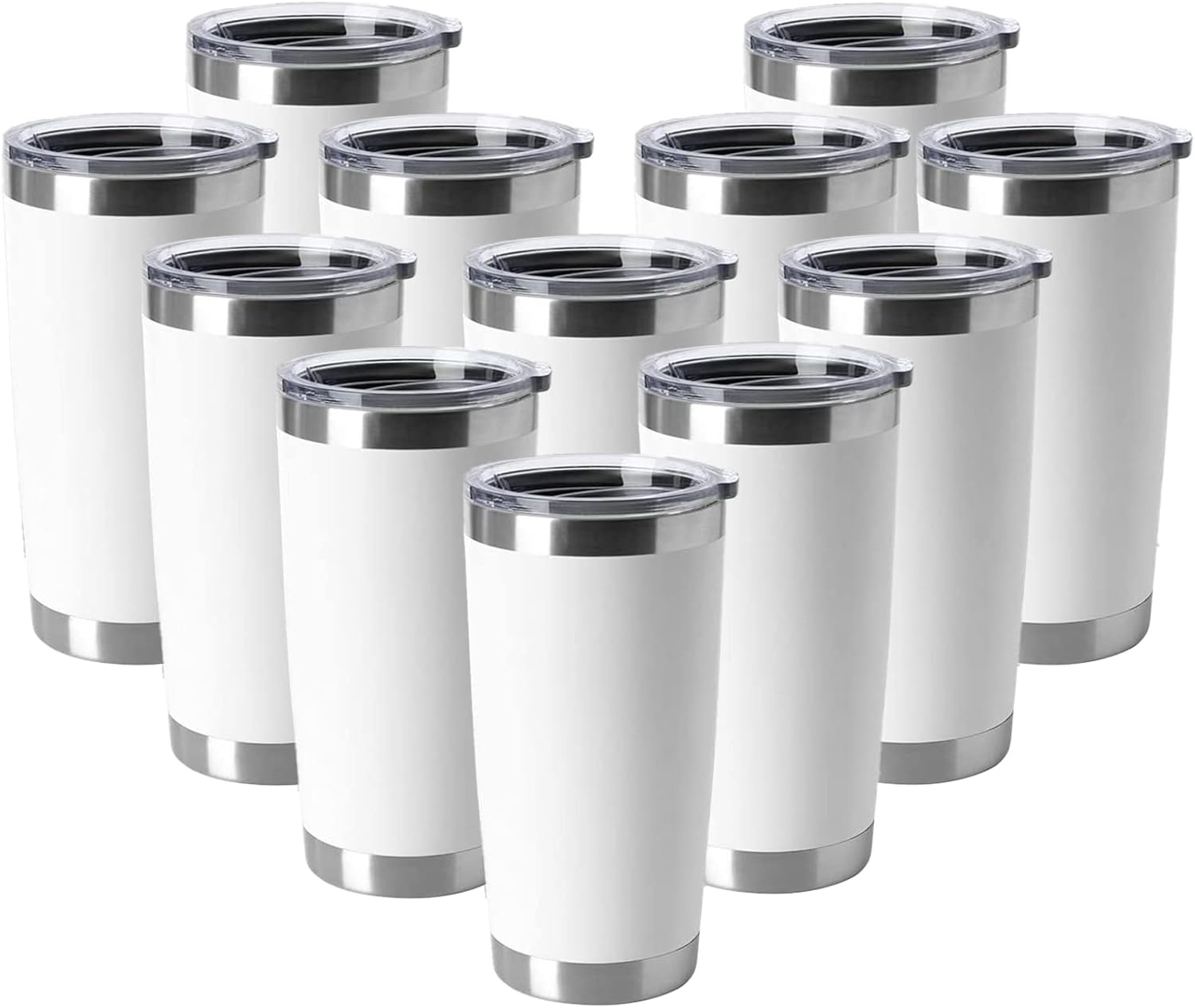 HASLE OUTFITTERS 20oz Tumblers Stainless Steel Mugs with Lid Double Wall Vacuum Insulated Coffee Cups for Cold & Hot Drinks (20oz-White, 12 Pack)