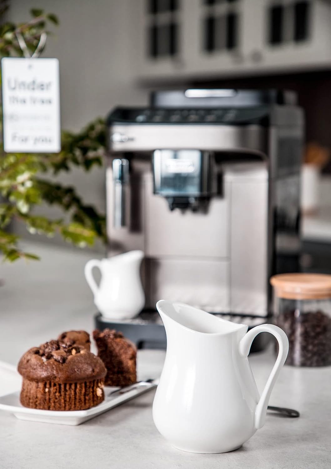 - 🍨 Pitcher Size: The milk pitcher upgraded big capacity 355ml/12oz set. White pitcher Light weight and mini size easy for home kitchen use and store.