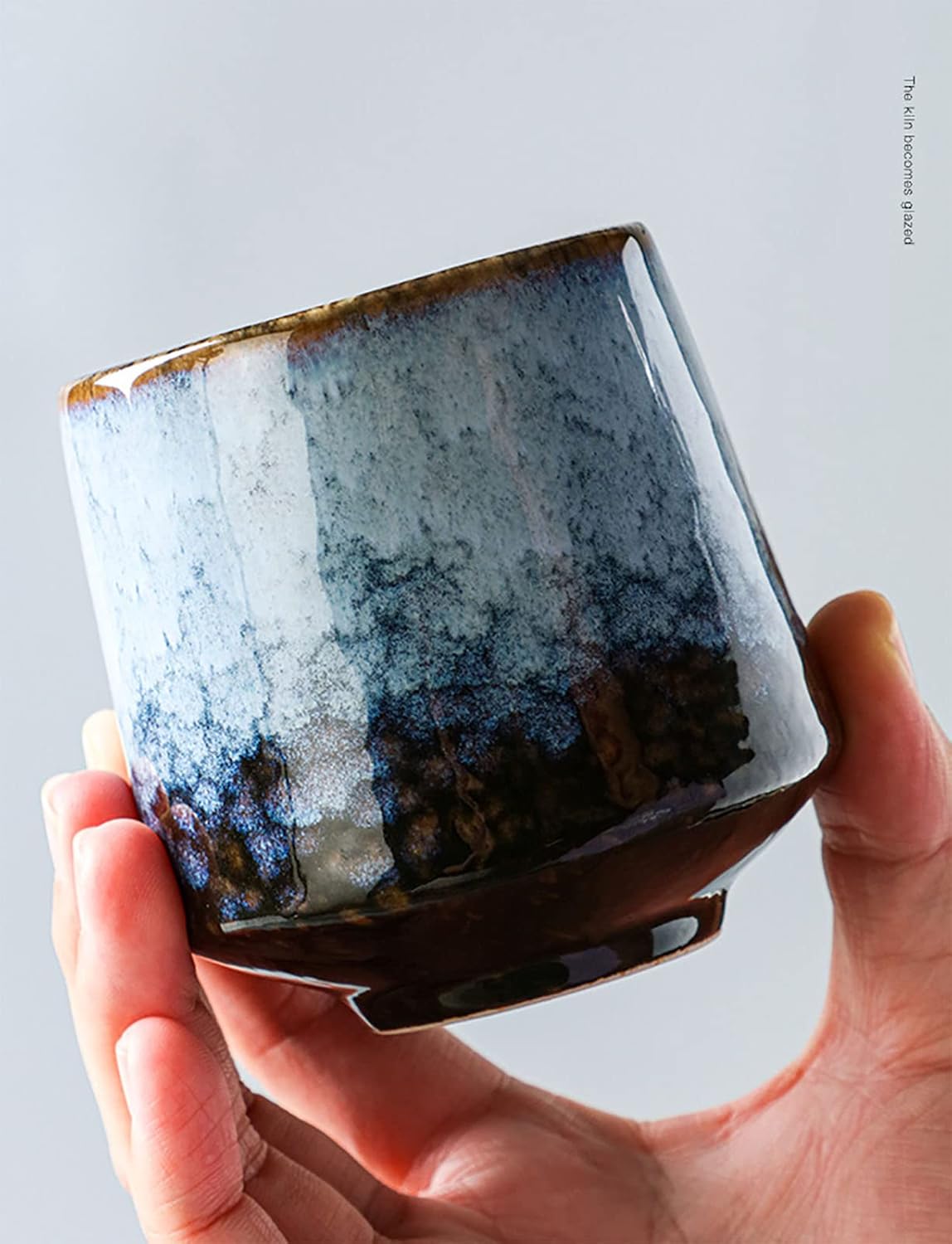 - The kiln change glaze is a kind of artistic glaze with many changes and rich colors; the characteristic of the kiln change process is that each cup is unique, and no two cups have exactly the same color and pattern. After high temperature firing, the glaze color is formed naturally. The bottom of the cup is polished and smooth, and the mouth of the cup is round and delicate.