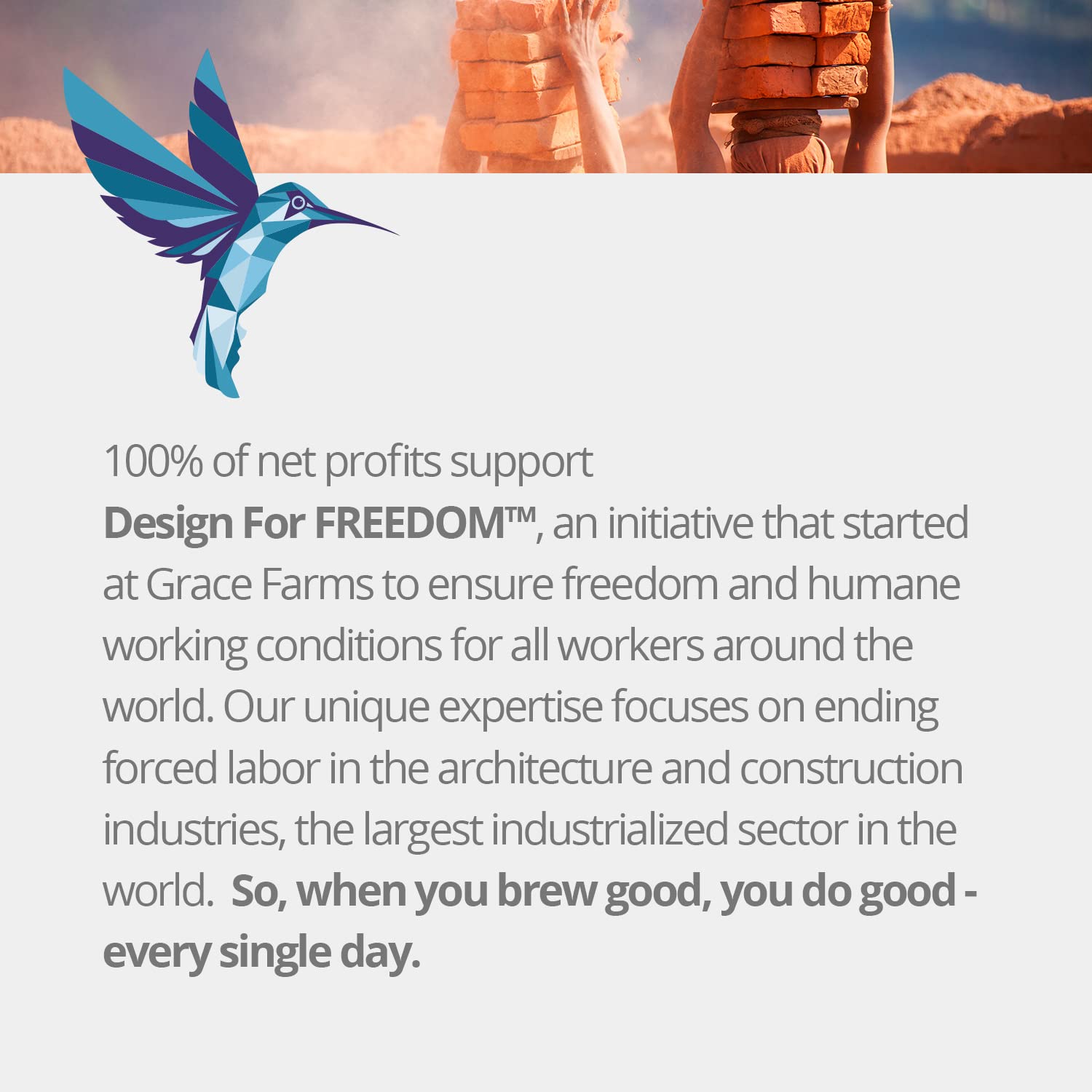 - GIVING BACK 100% OF PROFITS. We give back 100% of all profits to support the humanitarian work of Grace Farms Foundation to end forced labor worldwide.