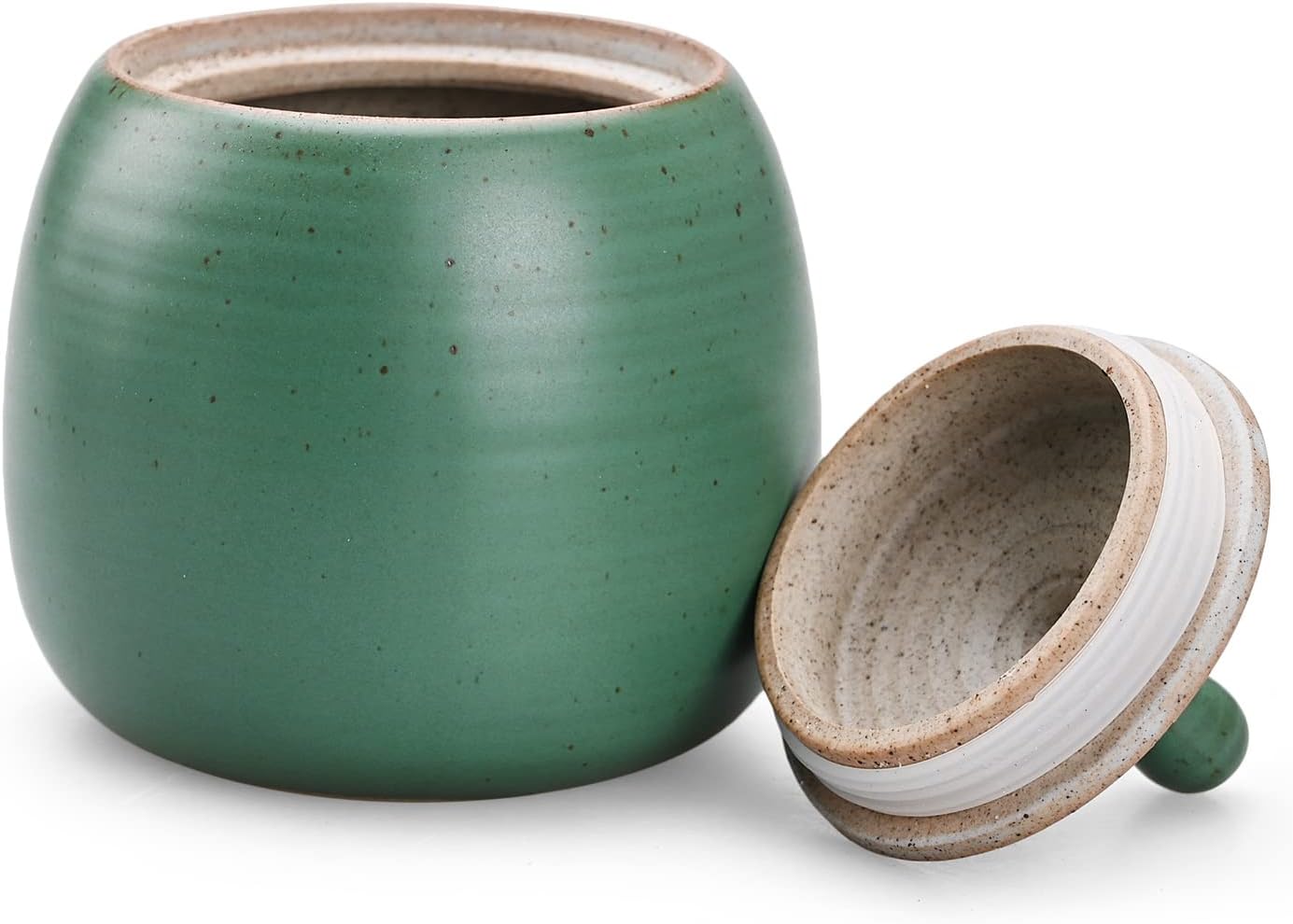 - [High-Quality Material] Made of high quality ceramic jar and BPA-free silicone airtight lid. Health and non-toxic, creating an airtight environment to keep contents dry, keep ingredients fresh and safe. Delightful, quality hermetically sealed round storage tin.Durable and easy to clean.