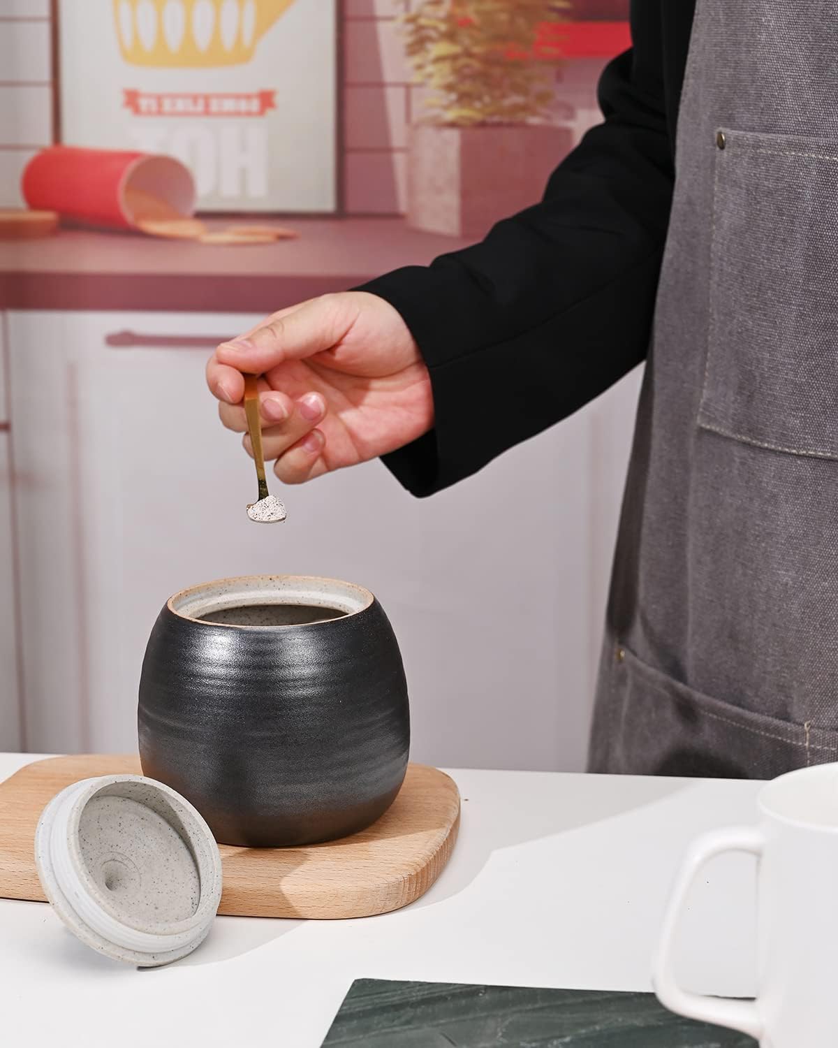 - [Multi-Use] This containers good for matcha tea, coffee, sugar, loose leaf tea, flower buds, biscuits and spices, also good idea use as home unique decorative.
