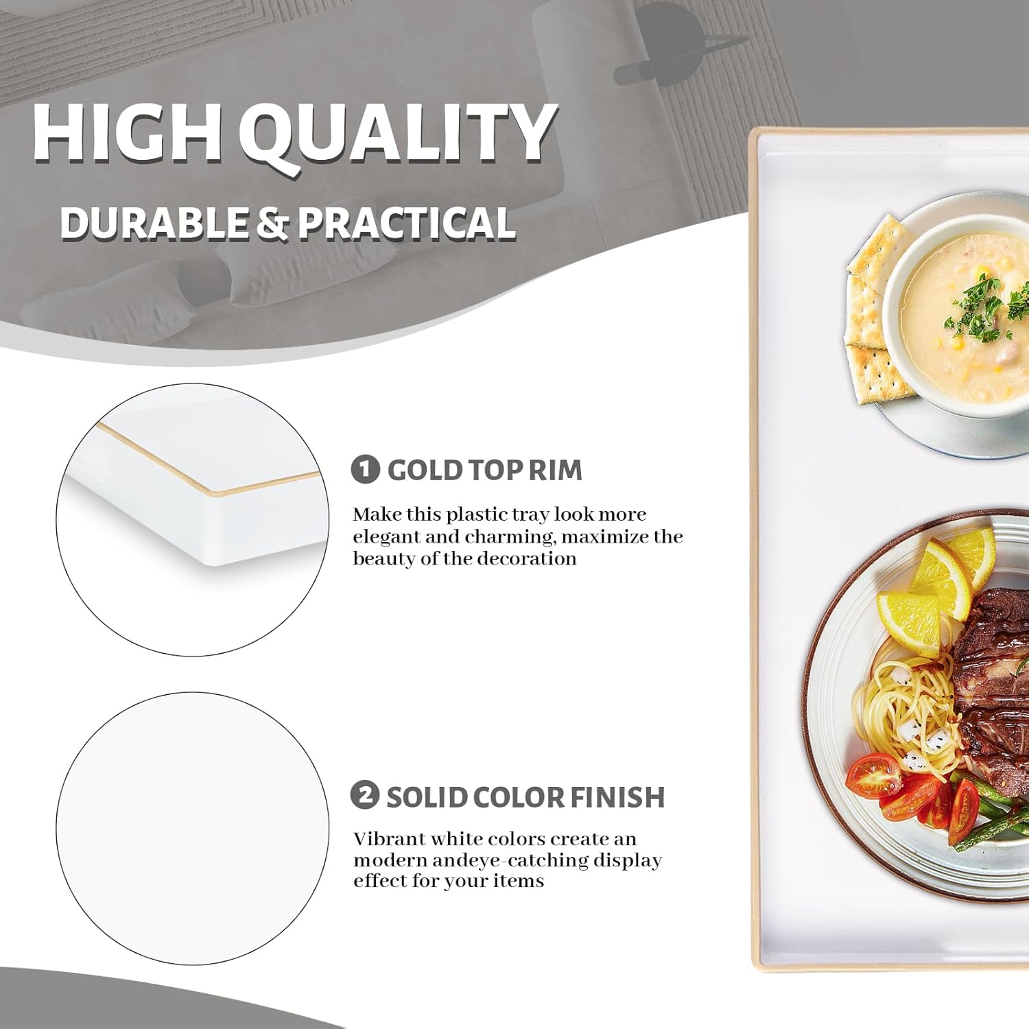 - PLASTIC SERVING TRAY: Rectangular tray provide a stable surface for plates, cups, and utensils, making it easier to carry and enjoy your meal without spills. Not only can it be used as a breakfast tray for enjoying breakfast in bed, but it also be used as a perfume tray, bathroom vanity tray, jewelry tray, accessory tray and makeup tray.