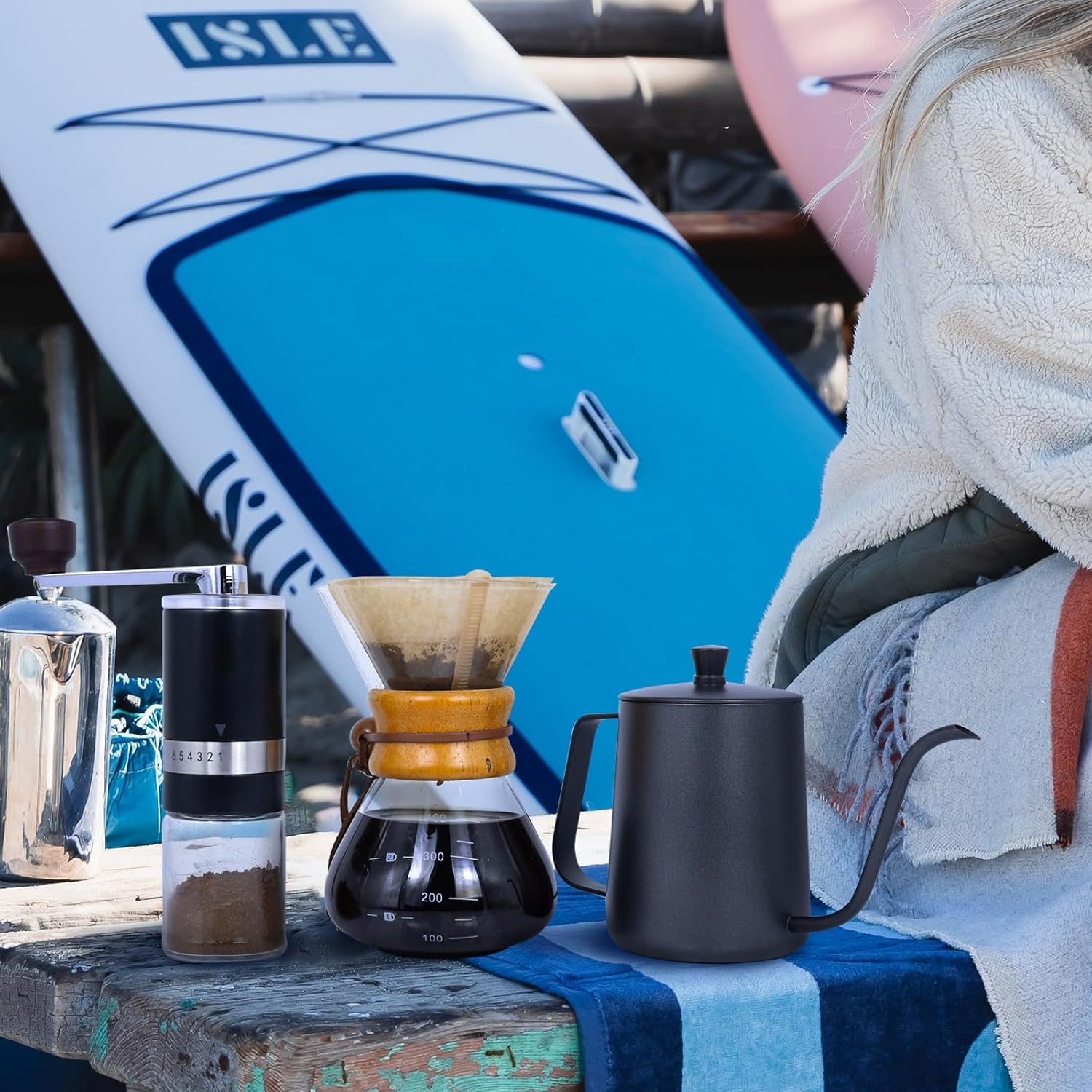 - Premium quality item:The coffee maker set is made of high quality meterial,the kettle and grinder are made from food-grade stainless steel and dripper from durable glass-best for your choice.