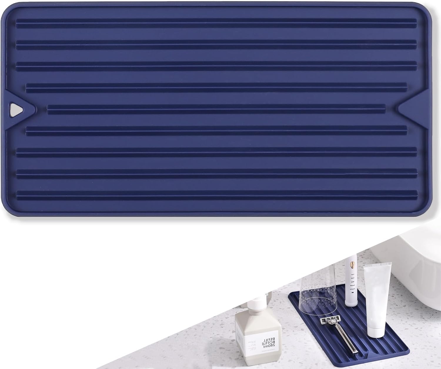 - 【FOOD GRADE SILICONE, MORE HEALTHY & GENTLER】Premium silicone drying mat for kitchen counter. Eco-Friendly & BPA-free. Due to silicone's excellent performance and based on the inventive design with great originality, nearly everything in the kitchen or bathroom can be put on this drying mat. With its elegant decoration, you'll have a more generous, more healthy and gentler lifestyle.