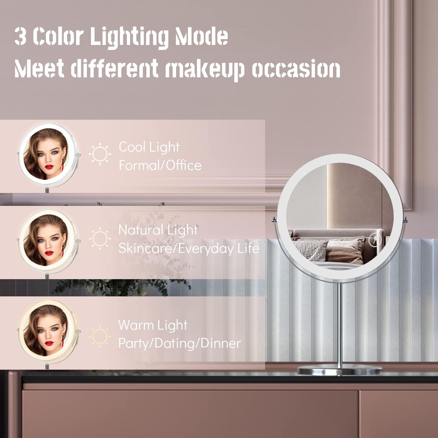 - ❤Smart Touch Brightness Adjustable Design - Lighted vanity mirror allows you to view yourselves in 3 different lighting environments by short pressing the switch. You could simply control the light setting from low to high brightness by long-press the screen.