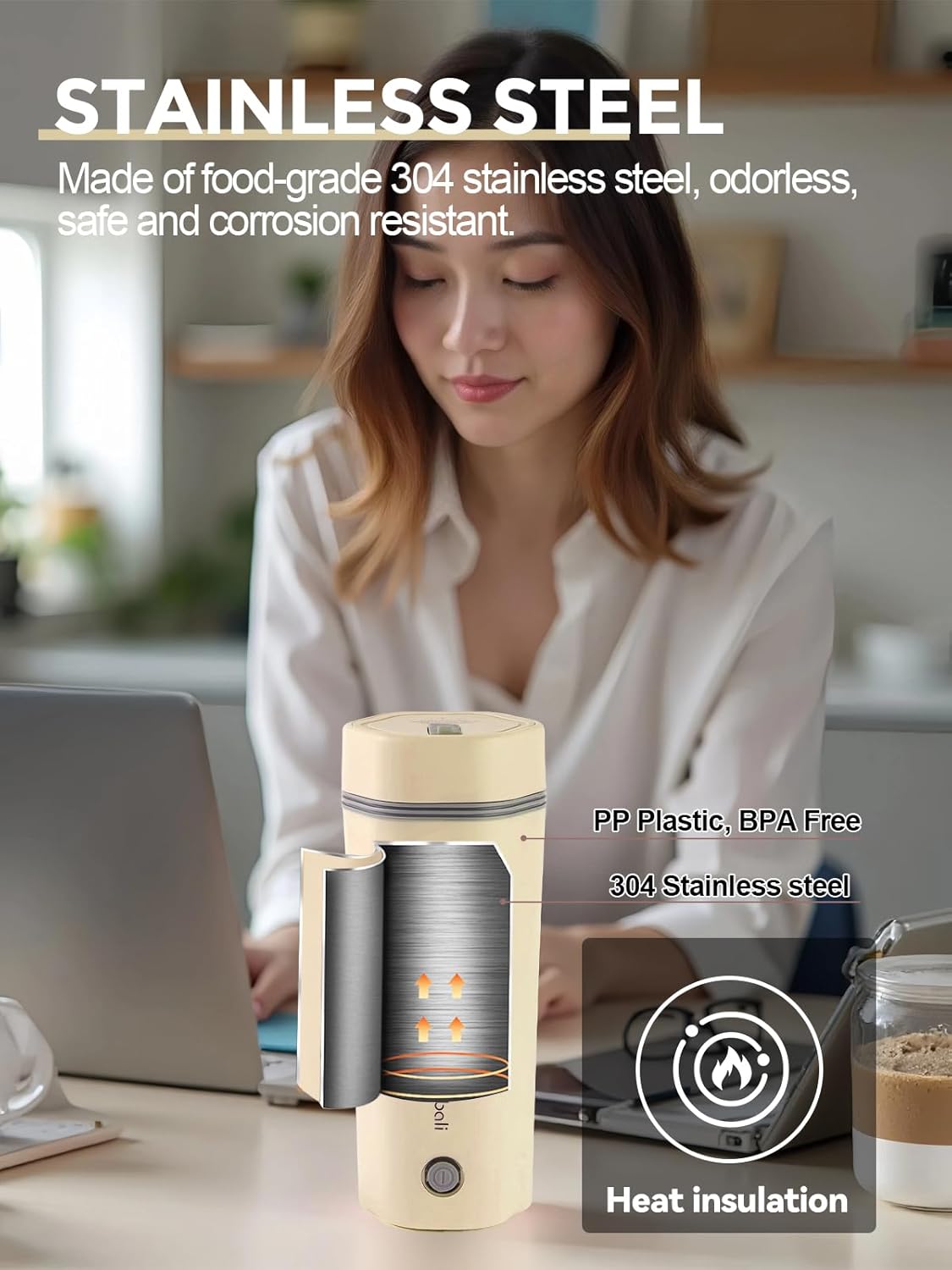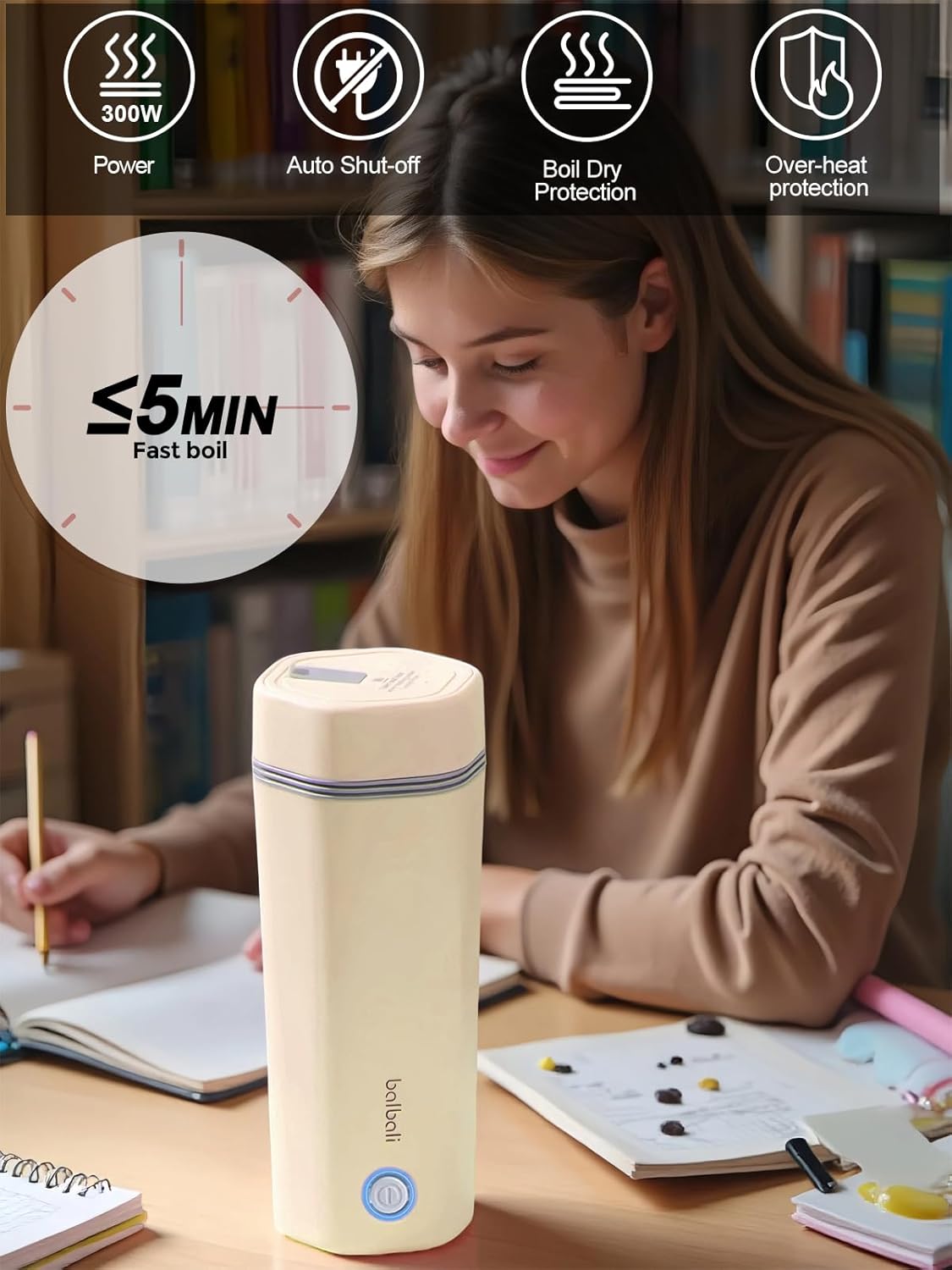 balbali Travel Kettle - 12oz Portable Electric Kettle for Boiling Water - Self Heating Cup/Thermos - Single Size Personal Tea Maker -Hot Water Boiler/Heater/Warmer - Yellow