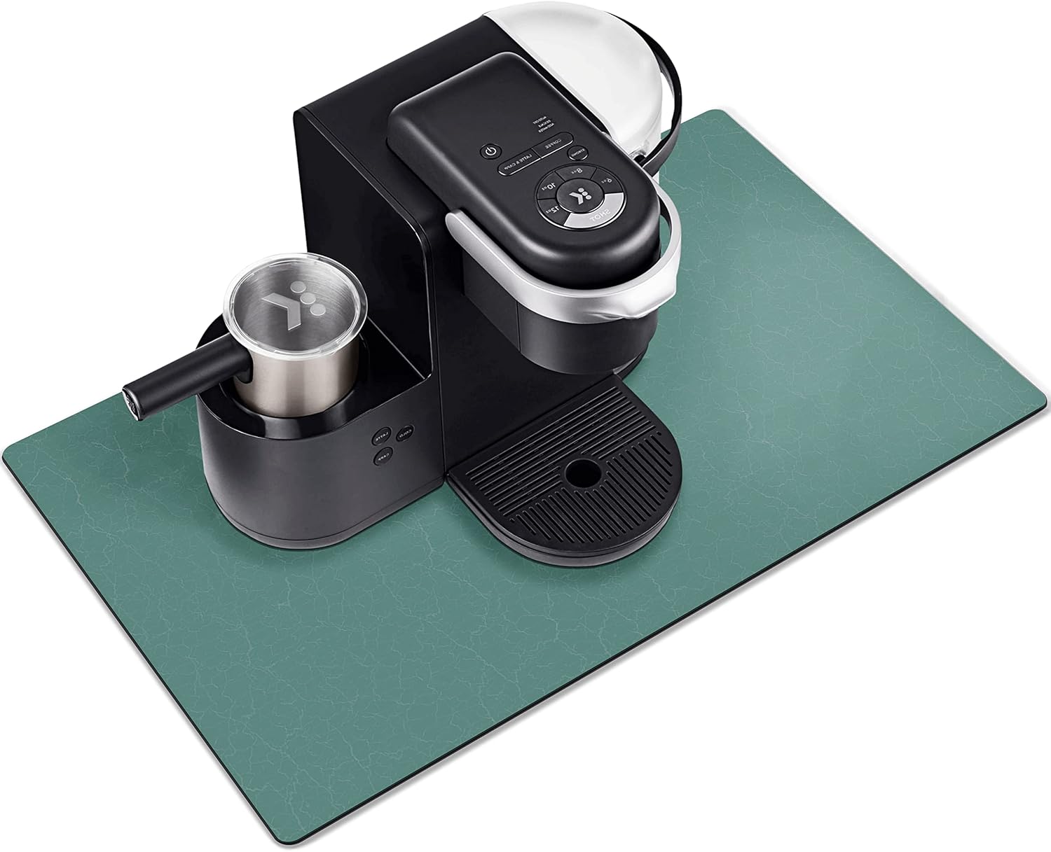 Coffee Dish Drying Mat,Coffee Bar Machine Decor Accessories,coffee maker mat for countertops,Absorbent Pad,Washable kitchen counter mat,Reversible Microfiber Fitted countertop cushions(bean green)